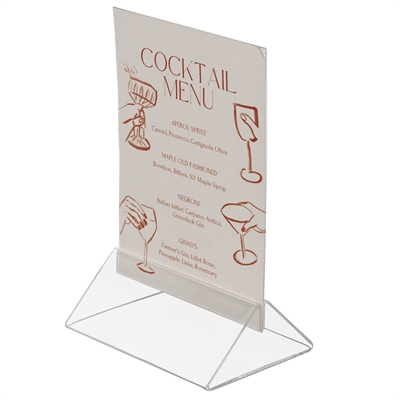 Denna smarta och genomskinliga akryl skilthållare är perfekt för presentation av menyer eller information i A5-format på bord och diskar. Den dubbelsidiga designen gör det enkelt att visa information från båda sidor, och innehållet kan snabbt bytas ut vid behov.