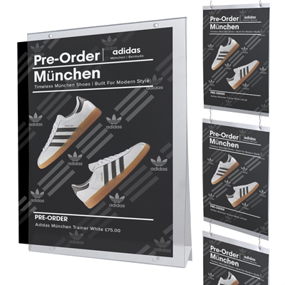 Denna typ av plakatficka används ofta i detaljhandel som stormarknader och varuhus och är idealisk för kampanjer, prisskyltar, information och andra reklambudskap.