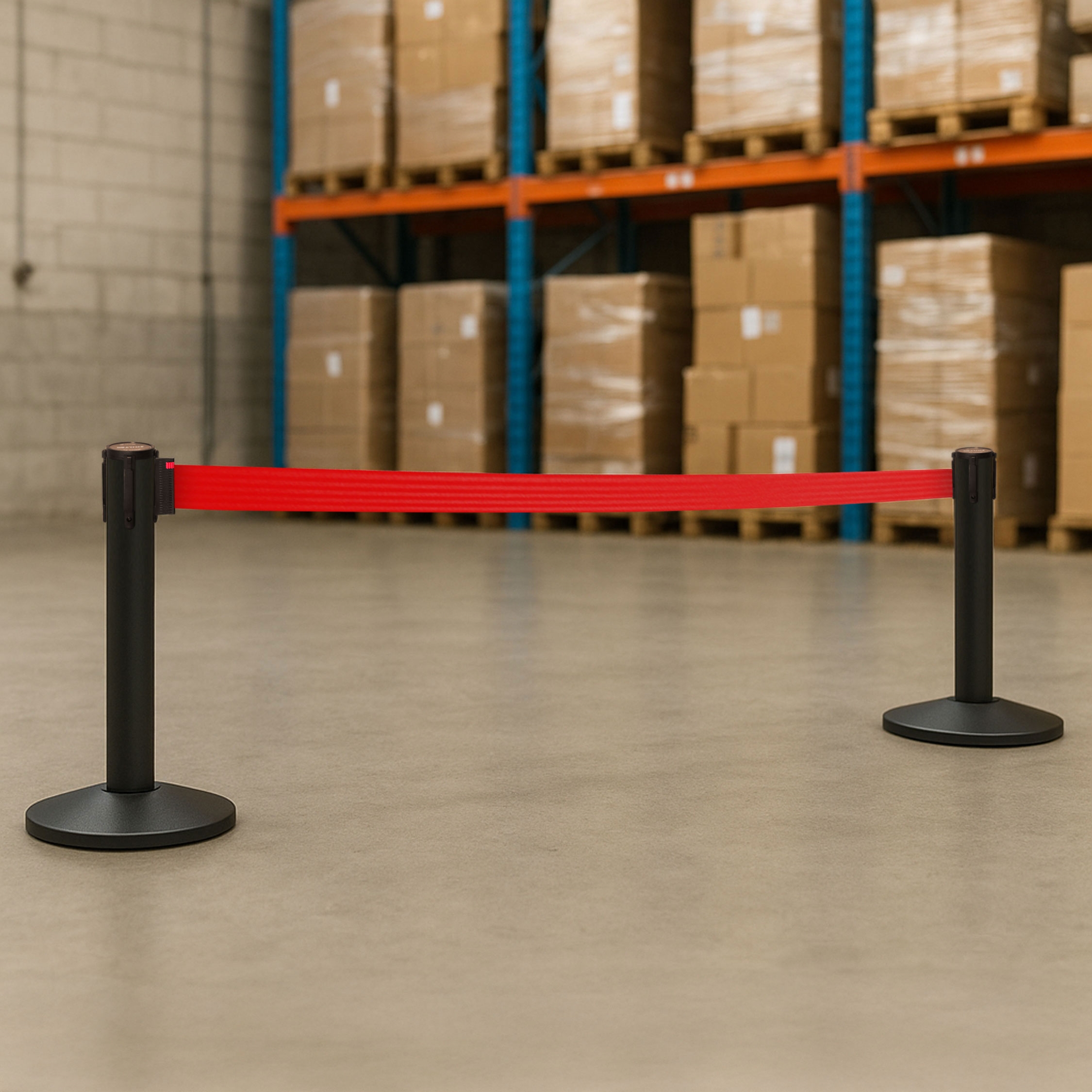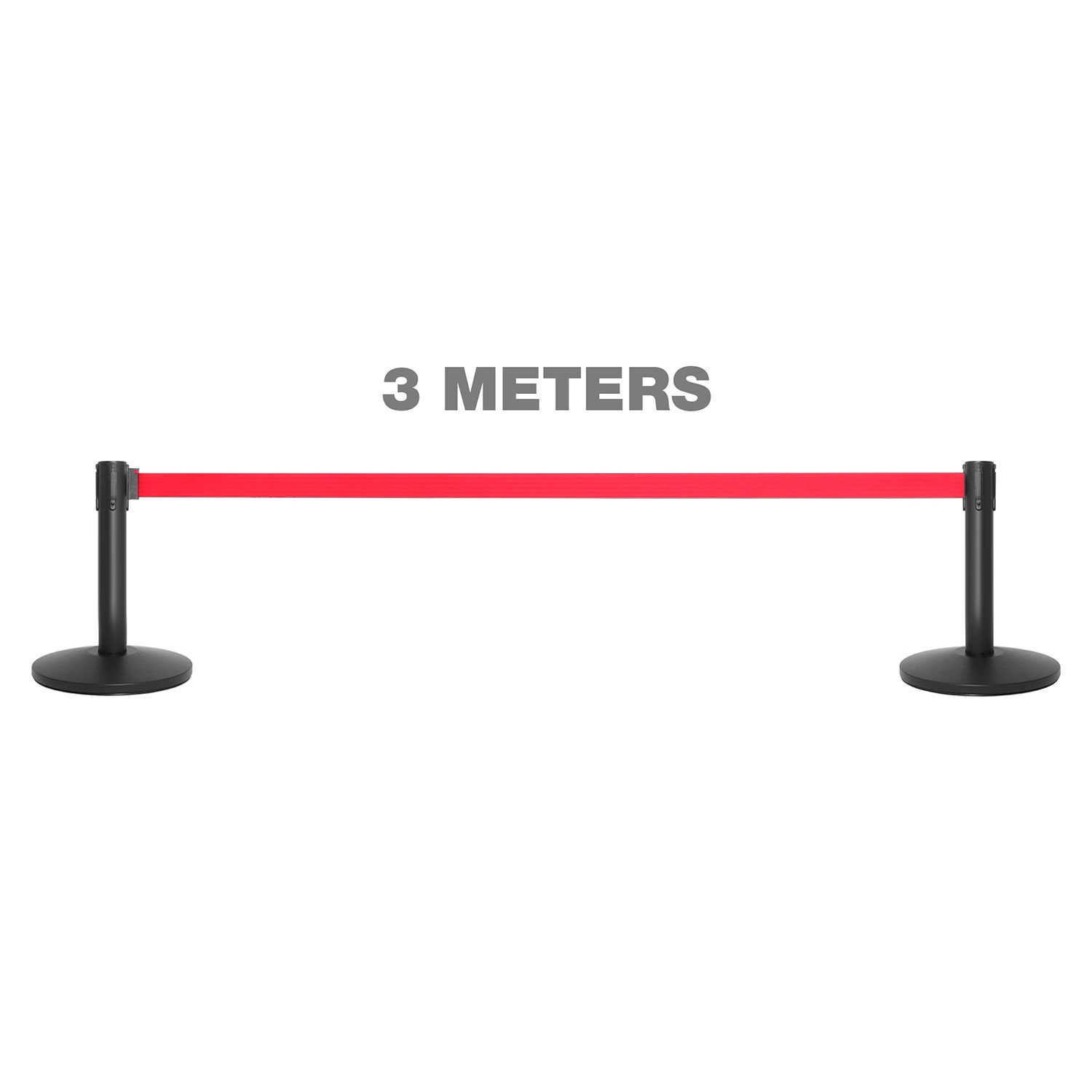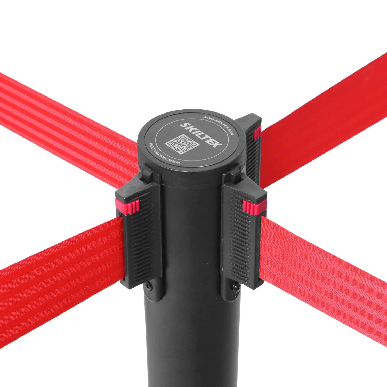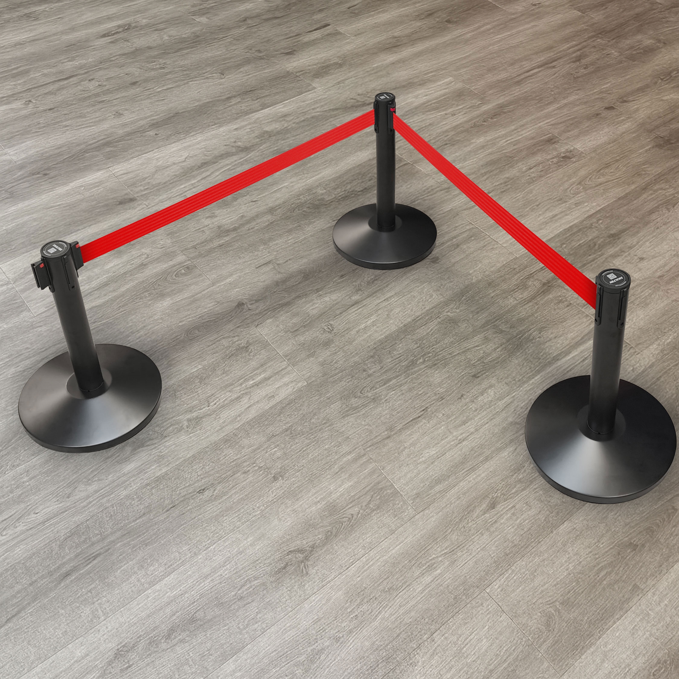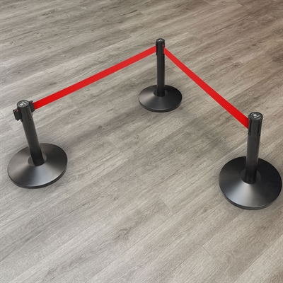 QueueMax Mini Svart Avspärrningsstolpe med rött band