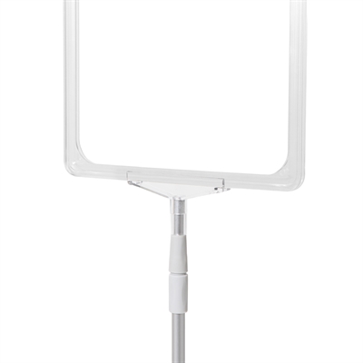 Skylthållaren är utrustad med en extra lång teleskopstång som kan justeras från 70 till 120 cm i höjd.