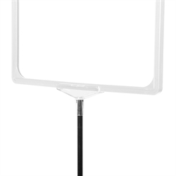 Skylthållaren är försedd med en XL teleskopstång som kan justeras från 70 till 120 cm i höjd samt en vit A4 plastram med toppöppning (stående).