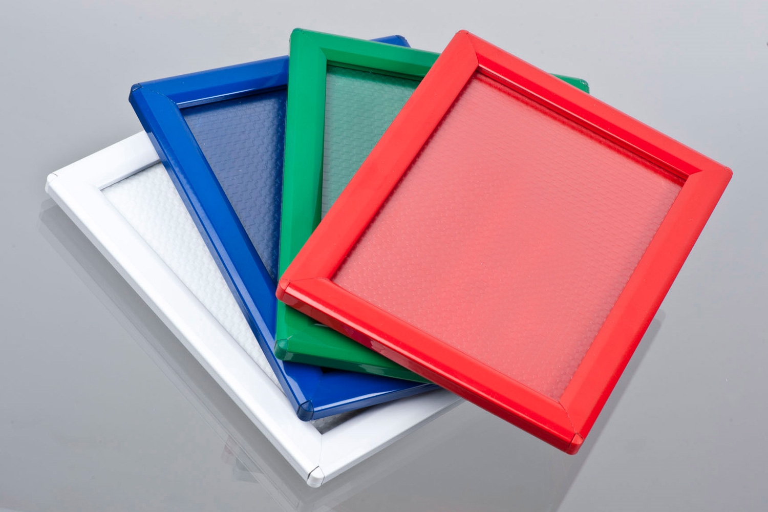Våra populäraste A4-ramar Opti finns nu i 4 nya färger: röd, grön, blå och vit. Opti Color klickramar har en snygg 14 mm profil som är enkel att öppna och stänga. Dessa ramar är utrustade med både krokar för väggmontering samt ett bakstöd vilket gör att de kan användas stående på bord/disk.