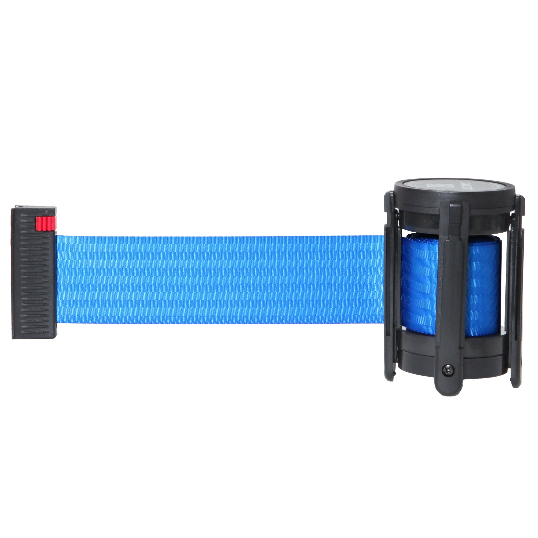 Monterbar kassett med 3 meter blått rullband till avspärrningsstolpar.