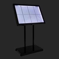 Menyskylten är utröstad med energisnåla vita LED ljus i kanterna som lyser upp de 8 x A4 sidorna samt en fjärrkontroll.