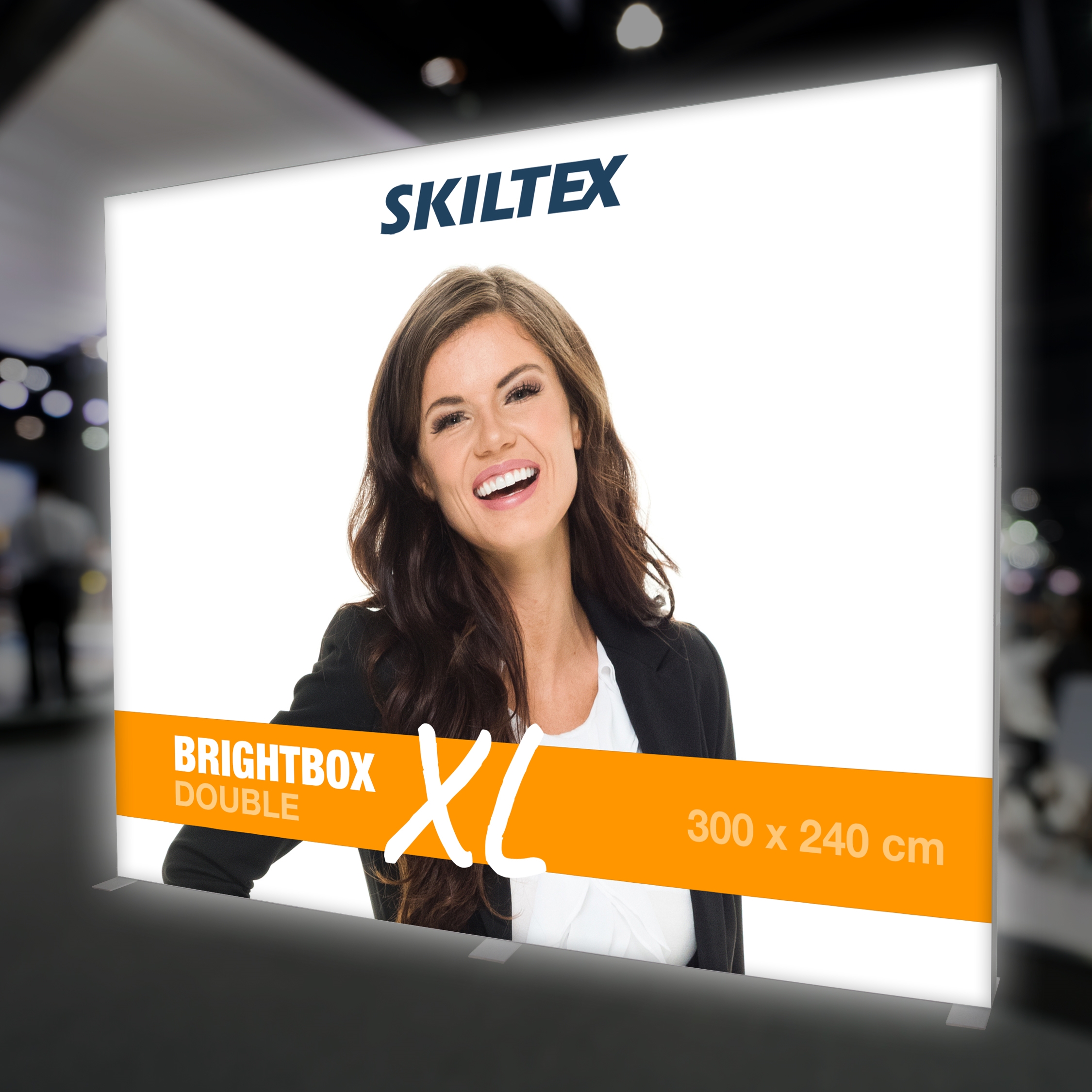 BrightBox Double XL är en smal, dubbelsidig ljusvägg med 120 mm profil, som är utrustad med kraftigt LED belysning.