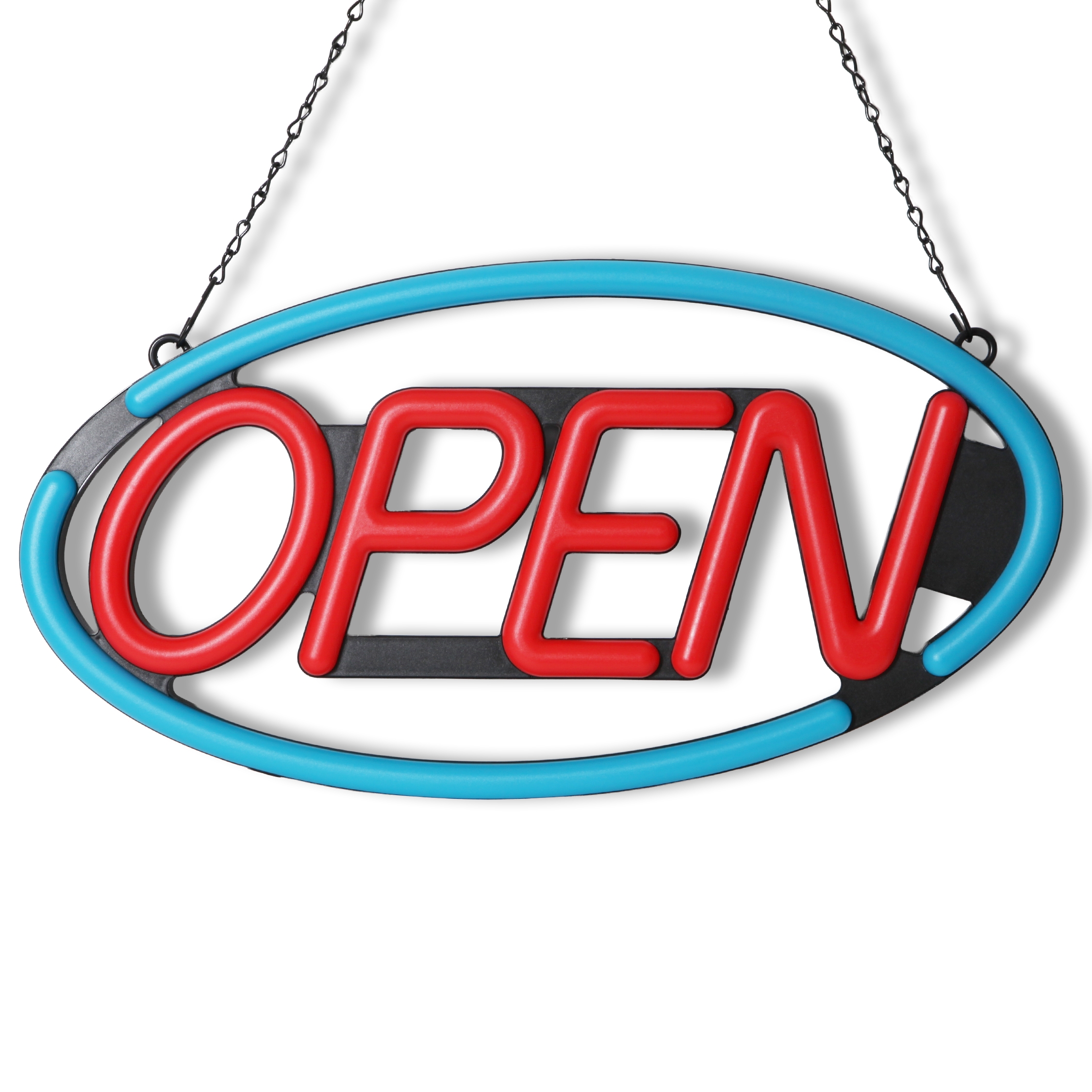 Deluxe "OPEN" LED blinkande neonskylt - Röd/Blå