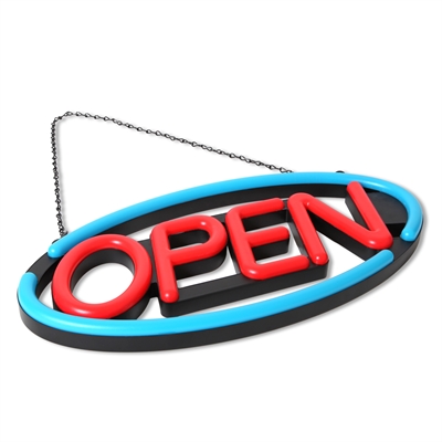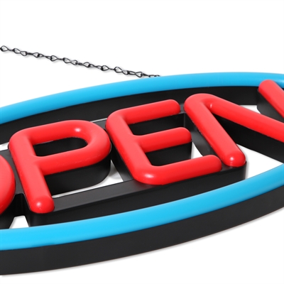 Skyltens kraftiga ljus gör att man kan använda den dygnet runt - också i dagtimmarna. Med sin höjd på 30cm och bred på hela 58cm, är denna skylt större än de flesta andra OPEN LED och neonskyltar på marknaden, och vill därför skapa mer uppmärksamhet på avstånd.