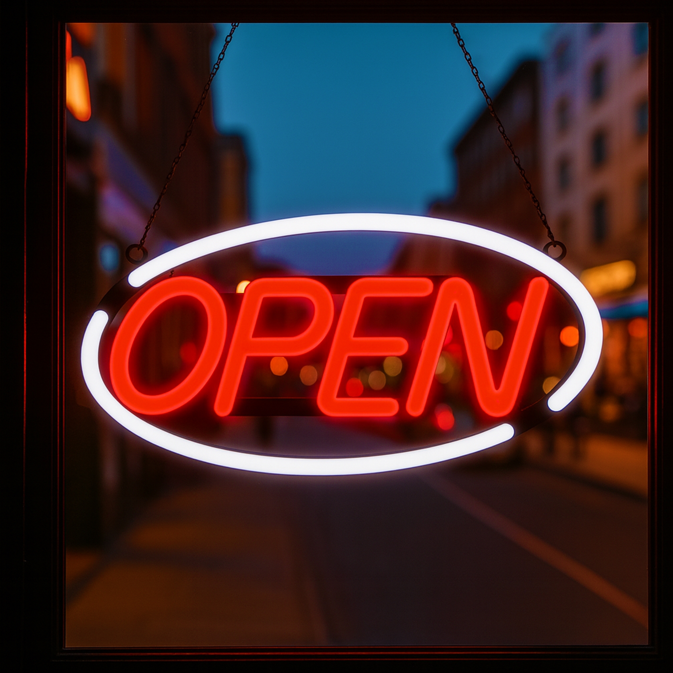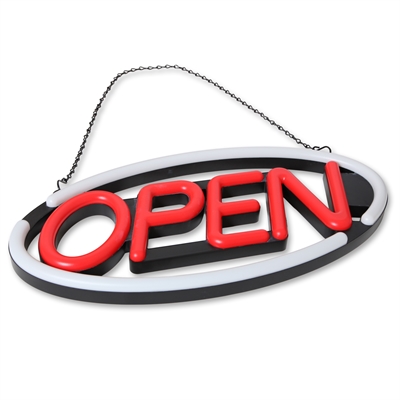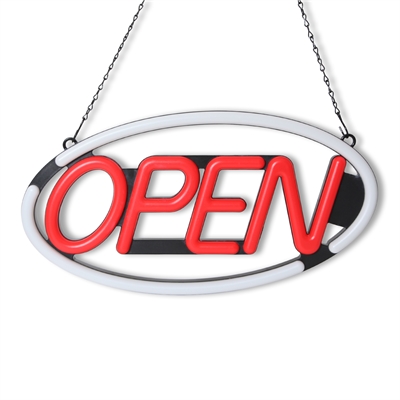 Skyltens kraftiga ljus gör att man kan använda den dygnet runt - också i dagtimmarna. Med sin höjd på 30cm och bred på hela 58cm, är denna skylt större än de flesta andra OPEN LED och neonskyltar på marknaden, och vill därför skapa mer uppmärksamhet på avstånd.