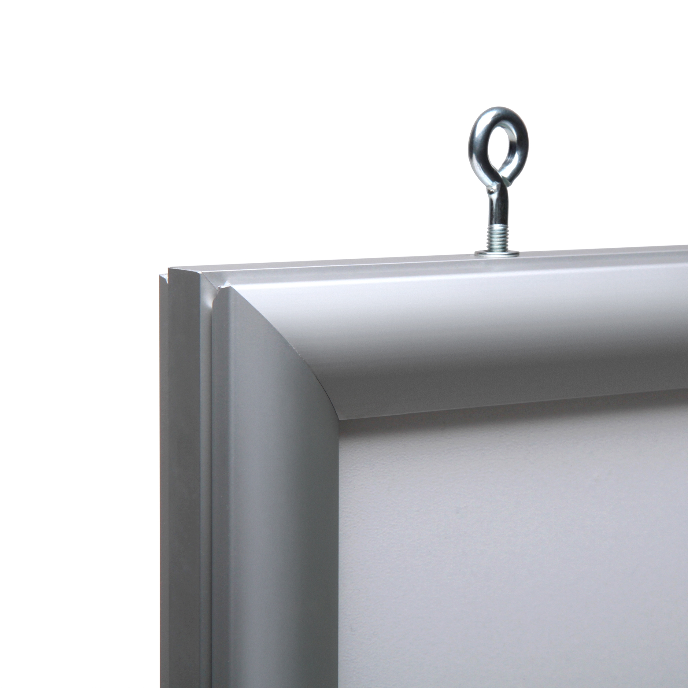 Snygg och iögonfallande dubbelsidig LED ljusram av hög kvalite med smal design. 30 mm klickram profil. Klickramprofilen på LED ljusramen gör det enkelt och snabbt att byta plakater och budskap. För takmontering.