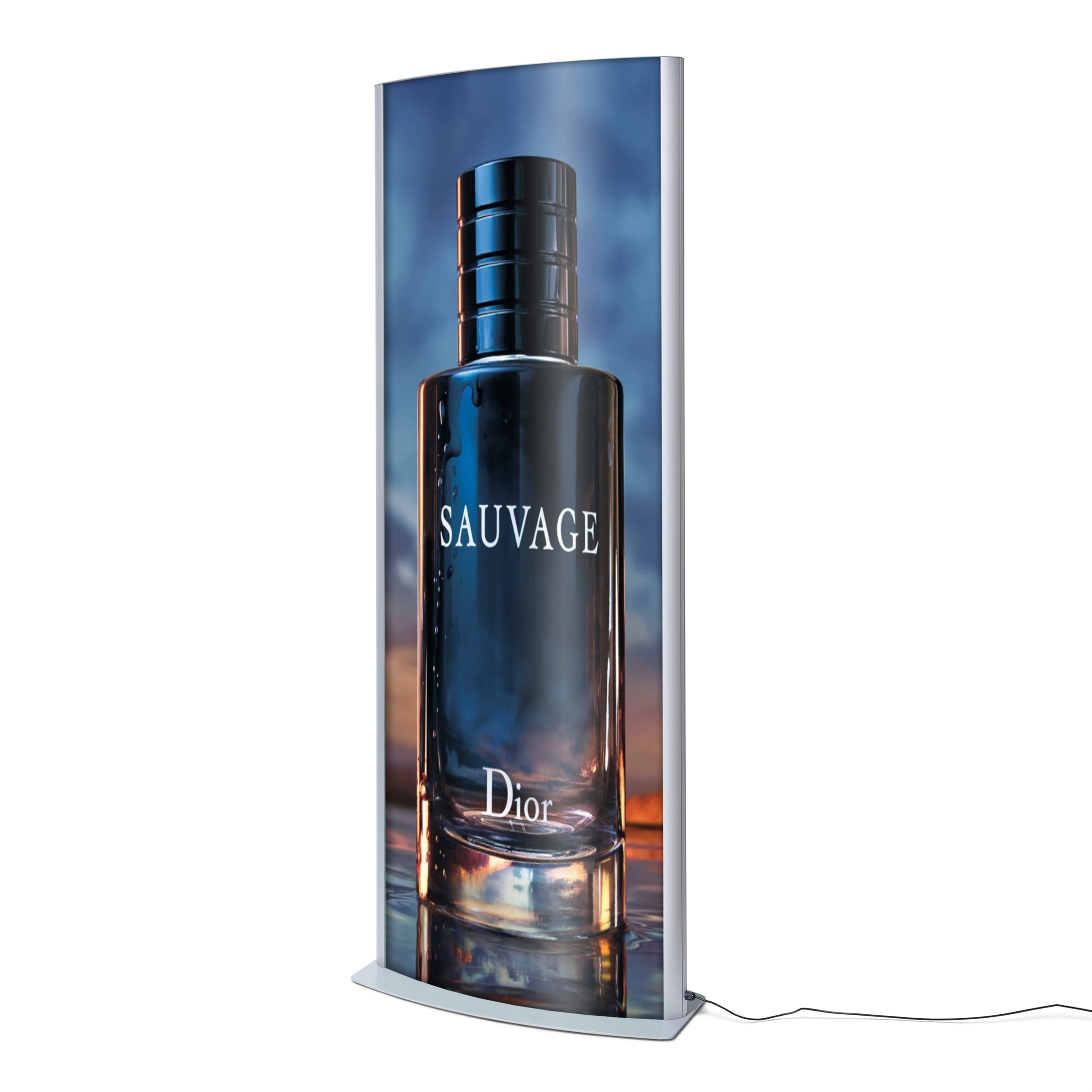 LED upplyst Totem Skylt, med dubbelsidig vertikal presentation av 2 x A1 (59,4 x 168,2 cm) plakat och fantastisk stabilitet. Till inomhusbruk.