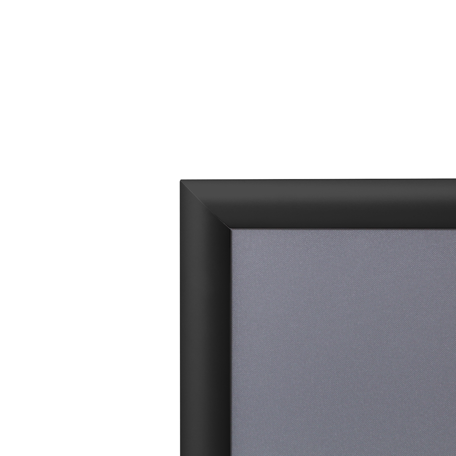 Frontprofilen är tillverkad av alu och är 25 mm i breden. Profilen är avrundad och stängd med ett litet grepp, som gör att ramarna är mycket lätta att öppna. Därför går det snabbt och enkelt att skifta budskapet inuti.
