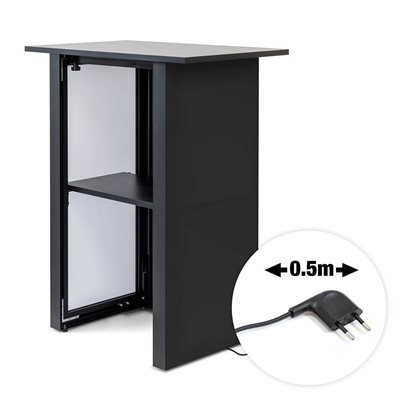 Premium och futuristiskt: Det är vad den Digitala Futuro Mässdisken handlar om. På ett ögonblick har du ställt upp bordet, tack vare dess verktygslösa montering. Hyllan inuti ger dig möjligheten att lagra din mässutrustning, så uppmärksamheten riktas endast mot främjandet på skärmen framför. Ta din presentation till nästa nivå och visa ditt varumärke, firma eller produkt på mässor, utställningar, evenemang, köpcentrum, pop-up-butiker och många fler!