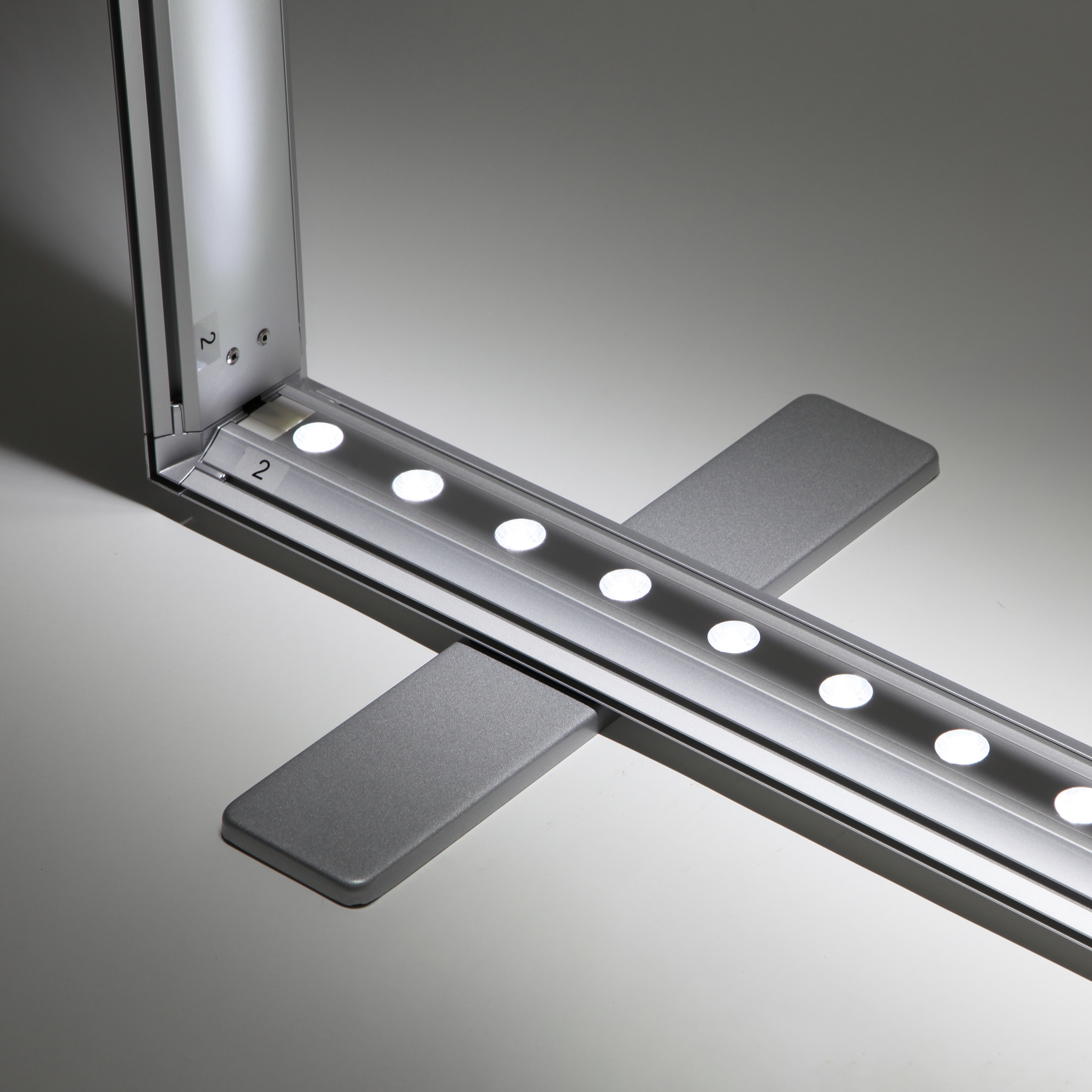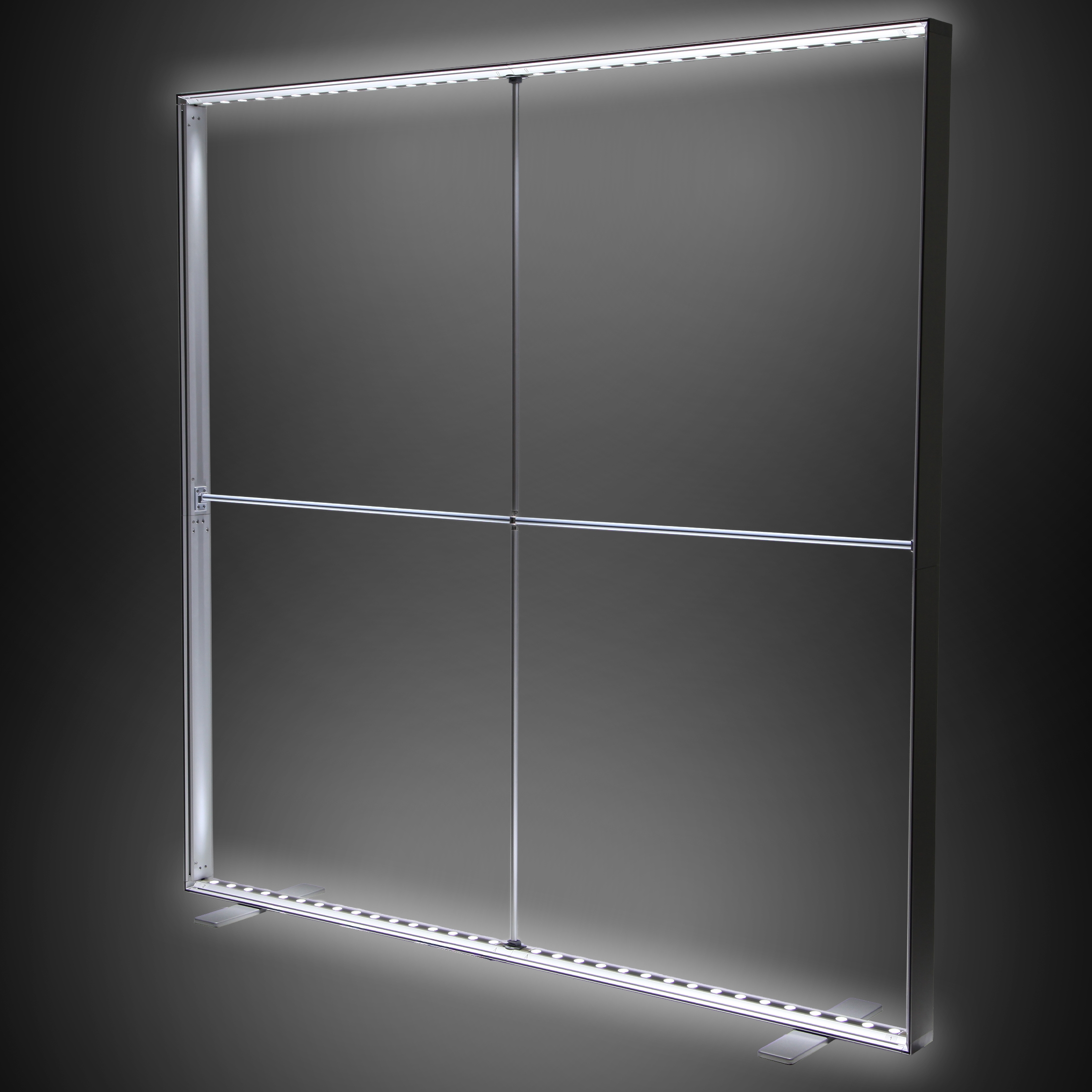Den integrerade bakgrundsbelysningen ökar den visuella effekten av dina budskap och skapar därmed en betydligt mer imponerande framvisning än traditionella mässväggar och roll ups.