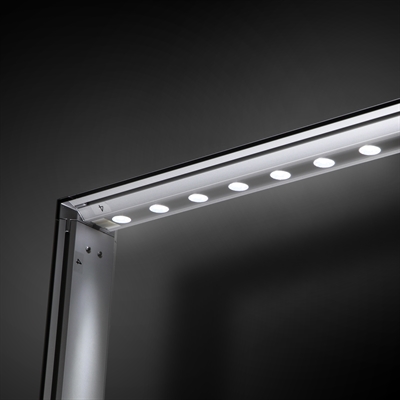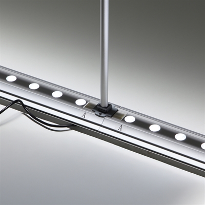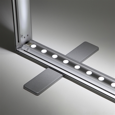 • Integrerad remsa på sidorna för att ansluta utställningsprofiler.