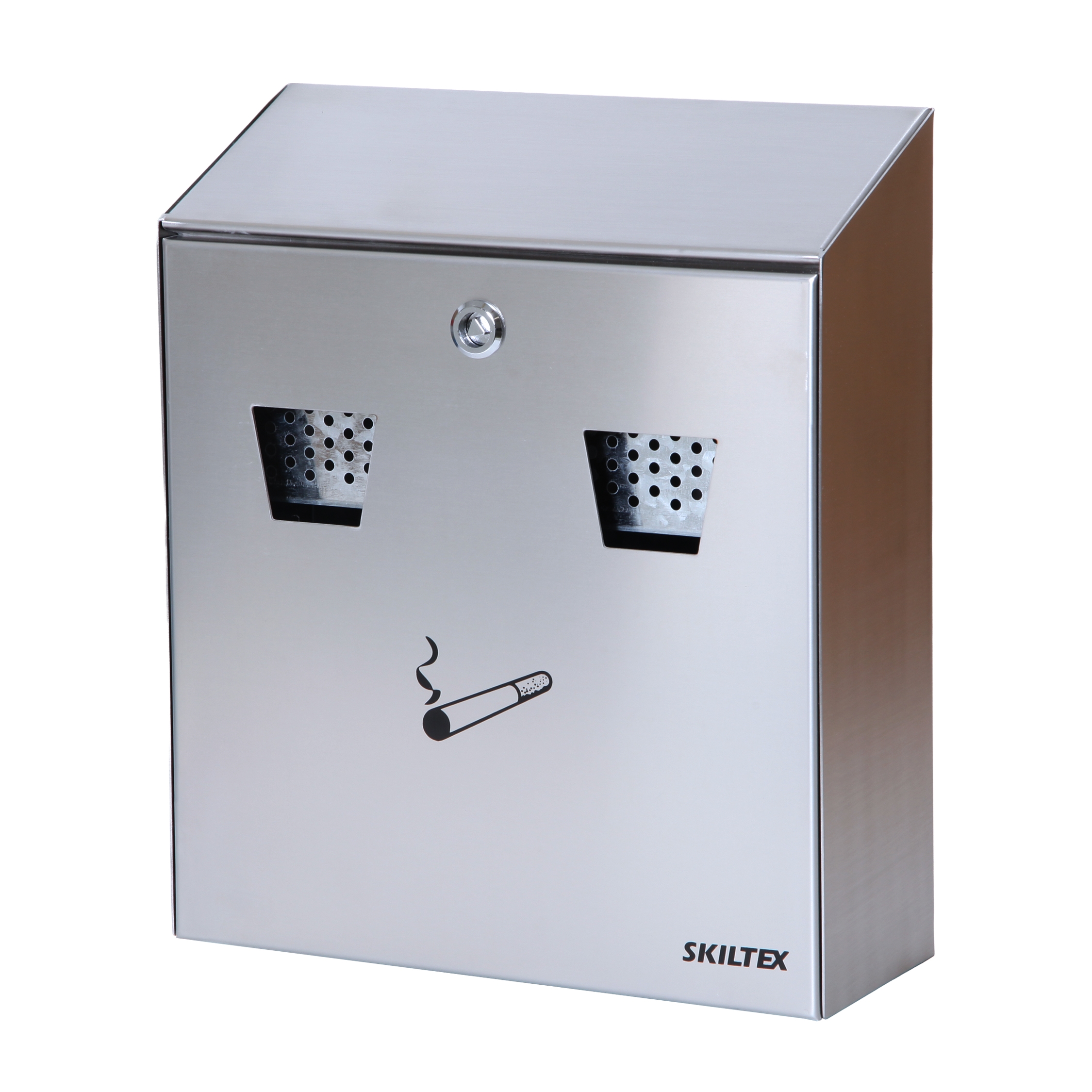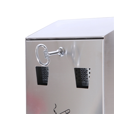 Fronten kan låsas, har en liten cigarettsymbol samt 2 hål med galler så att man lätt kan slänga sin cigarett enkelt och smärtfritt.