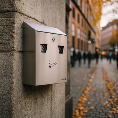 LUX askkopp för montering på vägg utomhus, producerad i rostfritt stål.