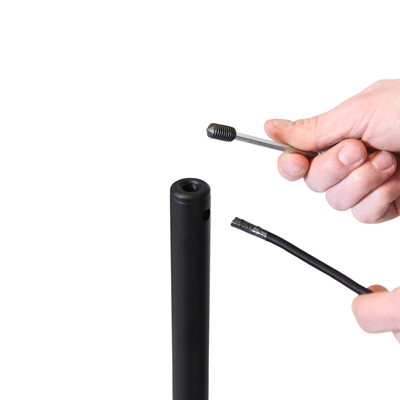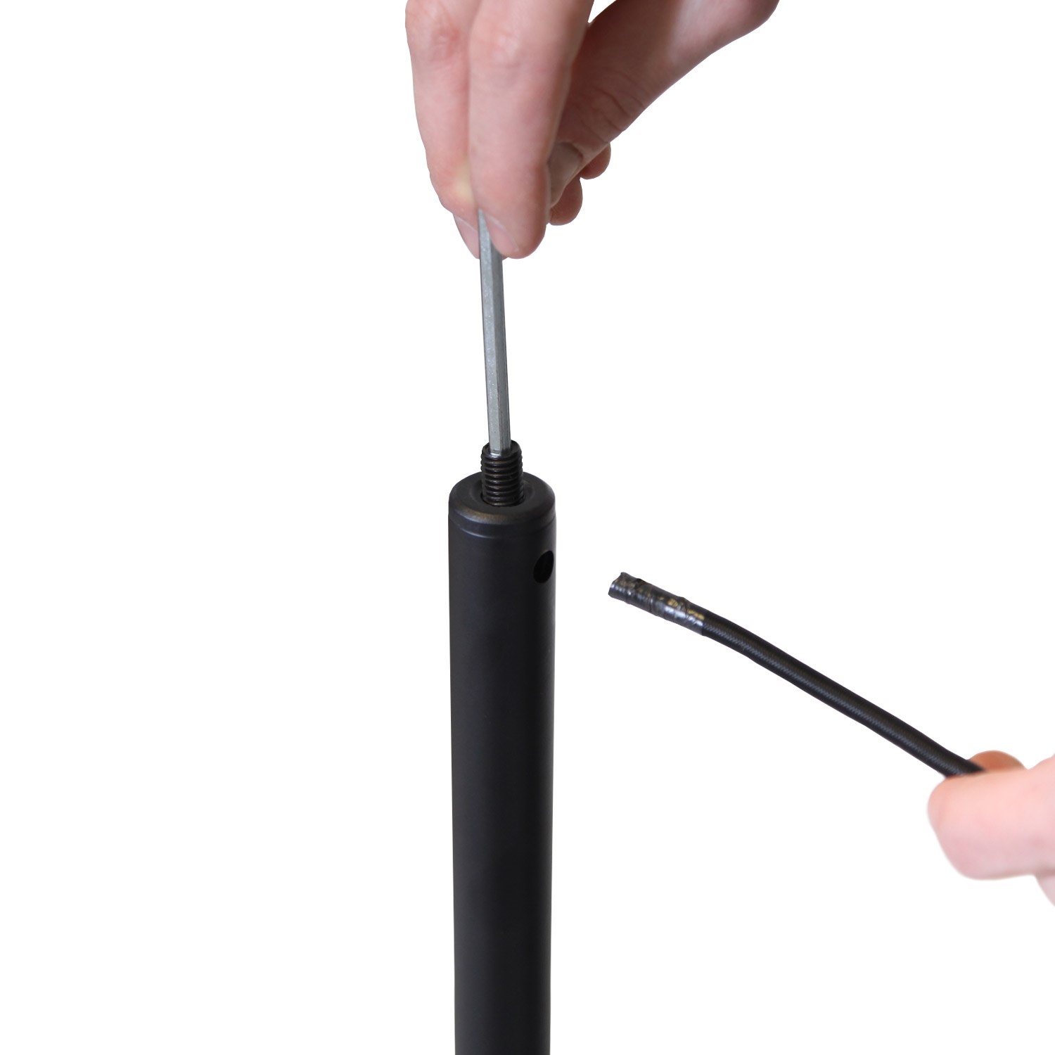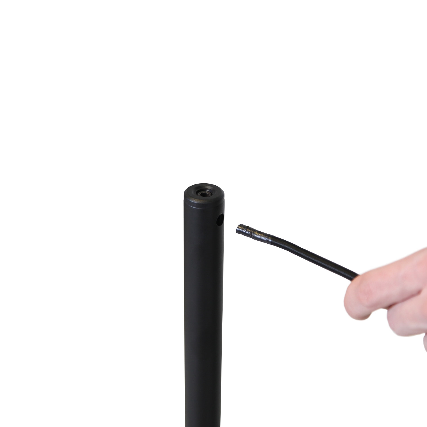 Repet ska köpas separat och finns i både röd och svart färg, samt både 5m och 25m längd. Repet fäster man genom att trä igenom hålet överst på stolpen, där du sedan skruvar fast muttern som håller repet stadigt och utspänt.