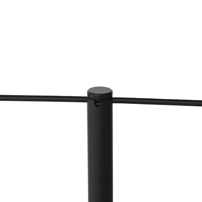 Stolpen är tillverkad i strukturerat pulverlackerat stål med en elegant matt finish. Själva stolpen har en diameter på endast 25 mm, vilket ger ett lätt och diskret uttryck samtidigt som den är mycket robust. Den runda foten har en diameter på 25 cm och väger hela 6,5 kg, vilket gör avspärrningsstolpen extremt stabil och mycket svår att välta – även i miljöer med hög besöksfrekvens.