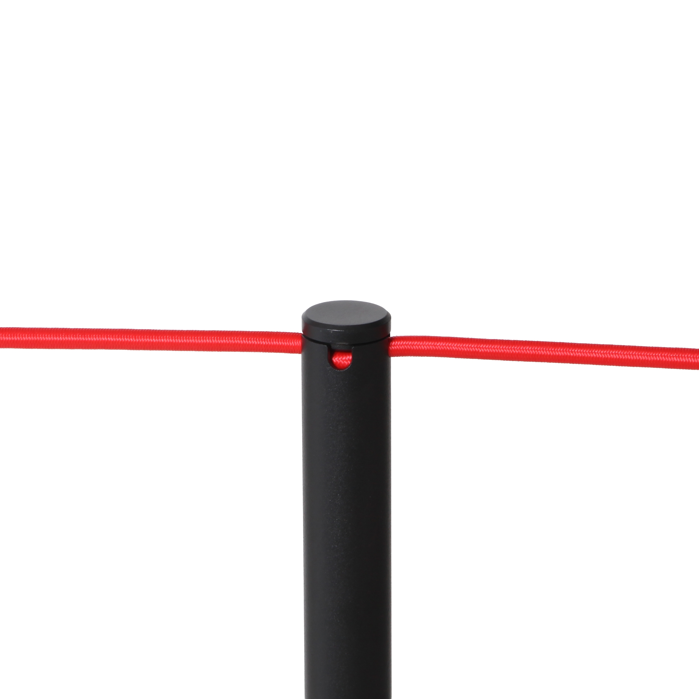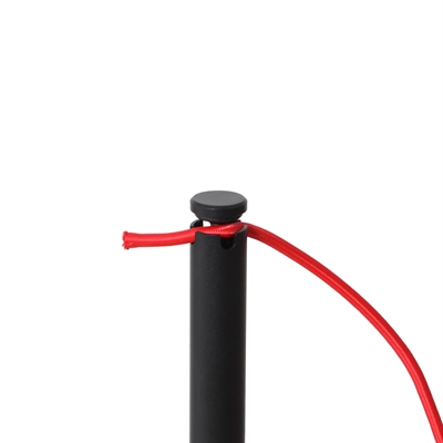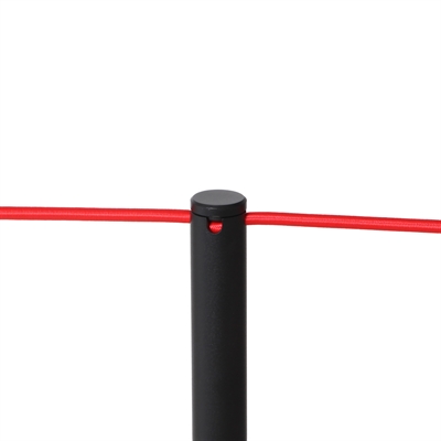 Det elastiska repet monteras enkelt genom att skruva av stolpens topp, placera repet inuti och sedan skruva fast toppen igen. Stolpens topp är försedd med 4 spår, vilket ger stor flexibilitet i uppsättningen: