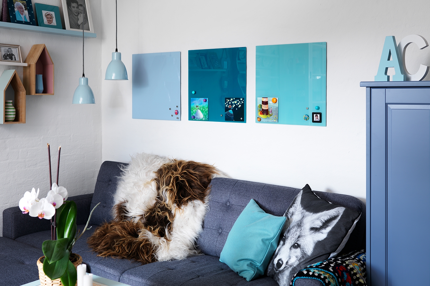 NAGA magnetisk ljusblå glastavla - 45x45 cm
