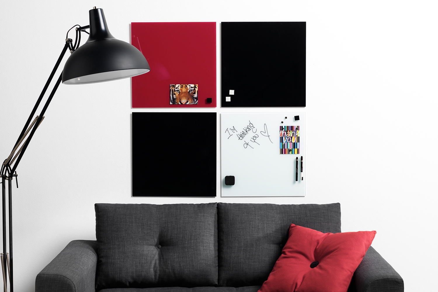 En praktisk glastavla med skrivvänlig yta. Du kan dessutom fästa papper, kalendrar, anteckningar, bilder och andra dekorationer på tavlan med magneter tack vare den magnetiska bakplattan. Glasytan kan skrivas på med glastavlemarkers, vanliga whiteboardpennor samt kritmarkers.