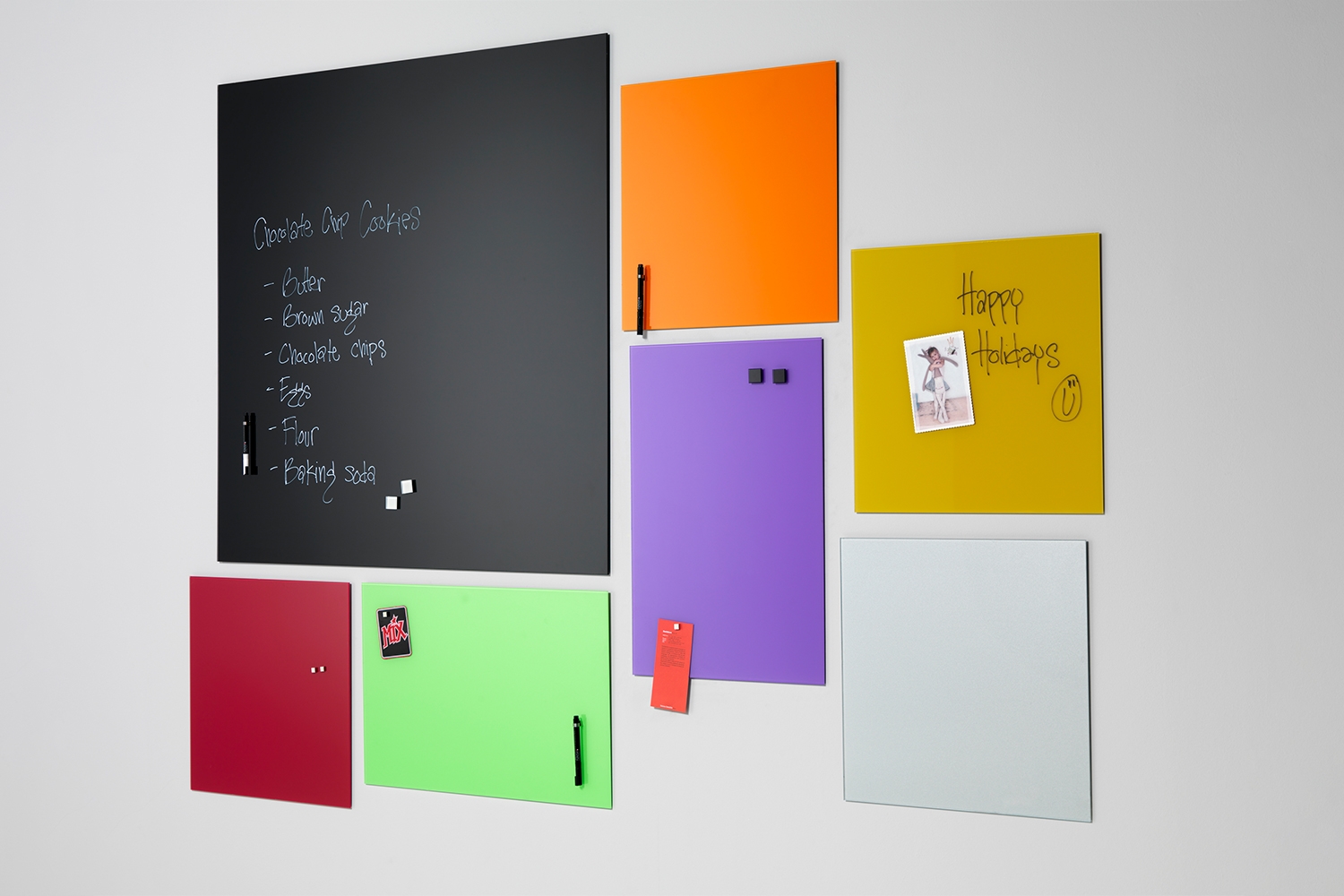 Sort kvadratisk glastavle til væg, magnetisk overflade. 100 x 100 cm. Med massere af plads til både tekst, tegn, og ophæng! Tavlens overflade er lavet af hærdet glas. Glasset er skrivevenligt, og velegnet til brug med glastavle markers, almindelige whiteboard markers, og endda kridt markers. Når teksten er tør, kan den nemt viskes ud igen, bare brug en tavlesvamp eller en tør klud.