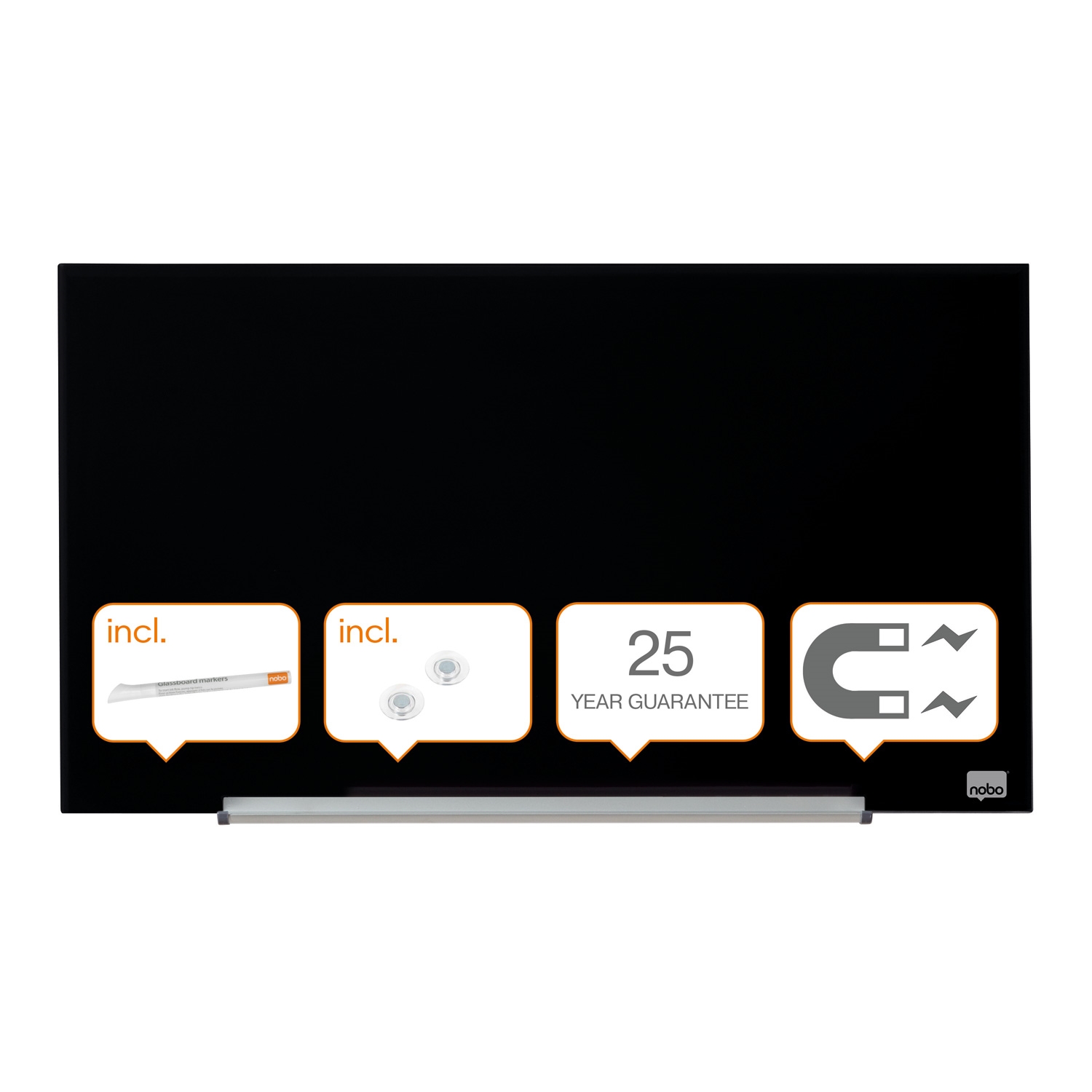 Flotta svart glastavlor i stilfull, kontemporär ramlös design från Nobo, som maximerar skrivytan på glastavlan.
