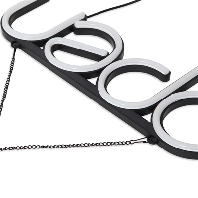 LED skyltarna lyser upp både dagsljuset och nattens mörker. Alla neonskyltar i vårt sortiment är lättviktiga, kommer med kedja och klämmor, som gör det enkelt att hänga upp dem.