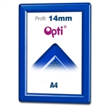 Våra populäraste A4-ramar Opti finns nu i 4 nya färger: röd, grön, blå och vit. Opti Color klickramar har en snygg 14 mm profil som är enkel att öppna och stänga. Dessa ramar är utrustade med både krokar för väggmontering samt ett bakstöd vilket gör att de kan användas stående på bord/disk.