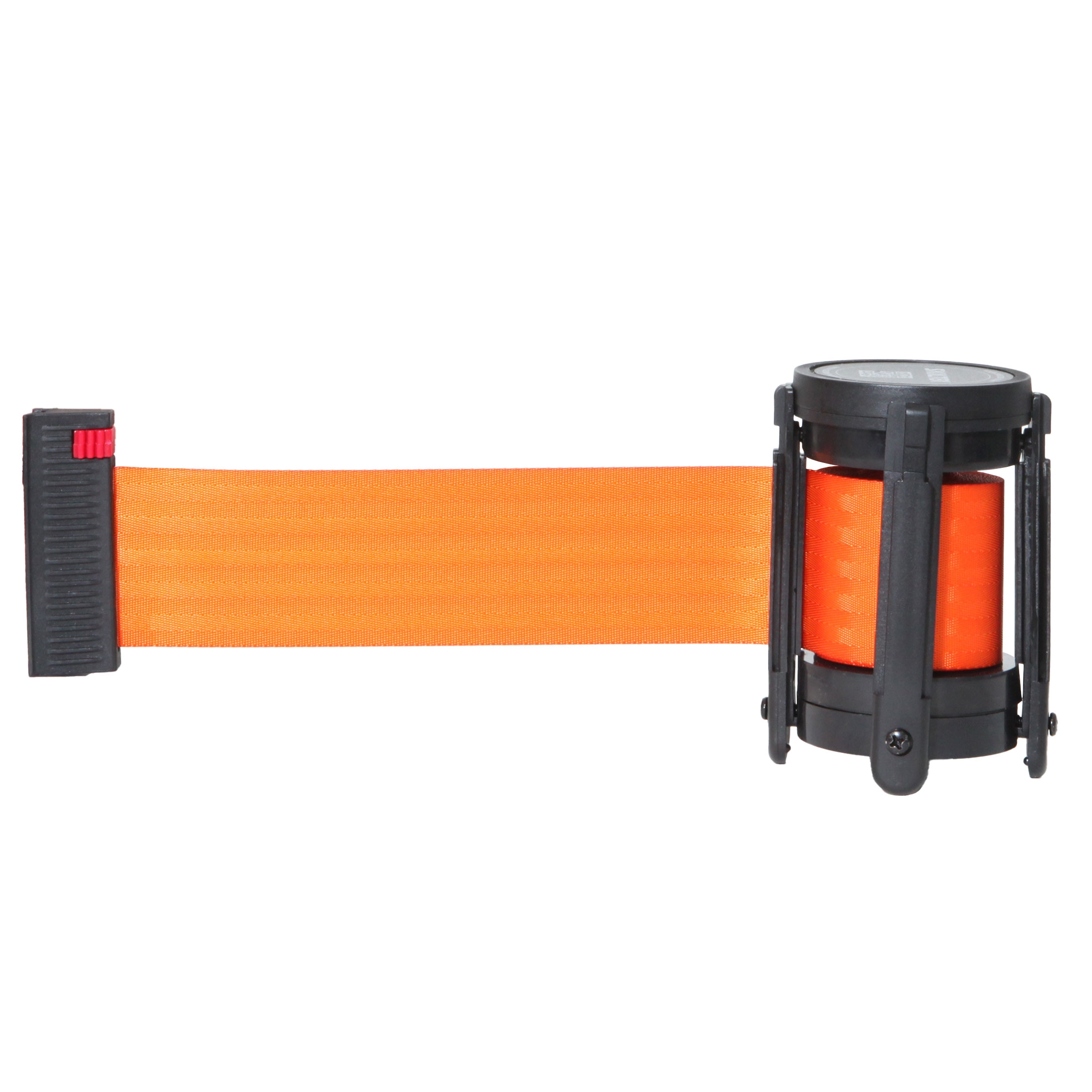 Monterbar kassett med 3 meter orange rullband till avspärrningsstolpar.