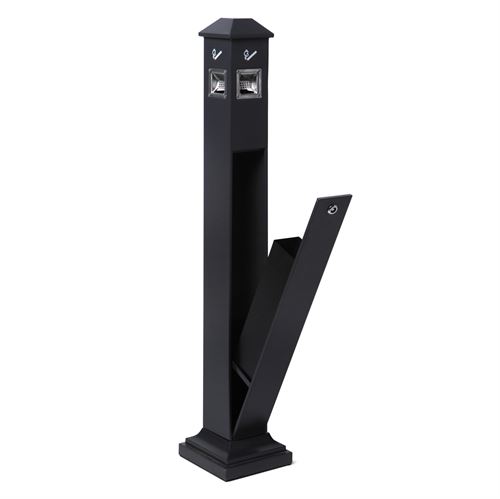 Fristående askkopp med elegant svart design. Har hål på alla sidor till cigarettavfall och passar perfekt till utomhusbruk.