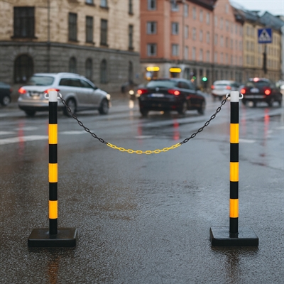 Denna stolpe ger en tydlig visuell avgränsning och är lätt att flytta vid behov. Kombinationen av svart och gul skapar hög synlighet även på avstånd. Tack vare den robusta konstruktionen och den fyllbara basen står stolpen stadigt även i tuffa utomhusmiljöer - en smart och hållbar lösning för avspärrning.