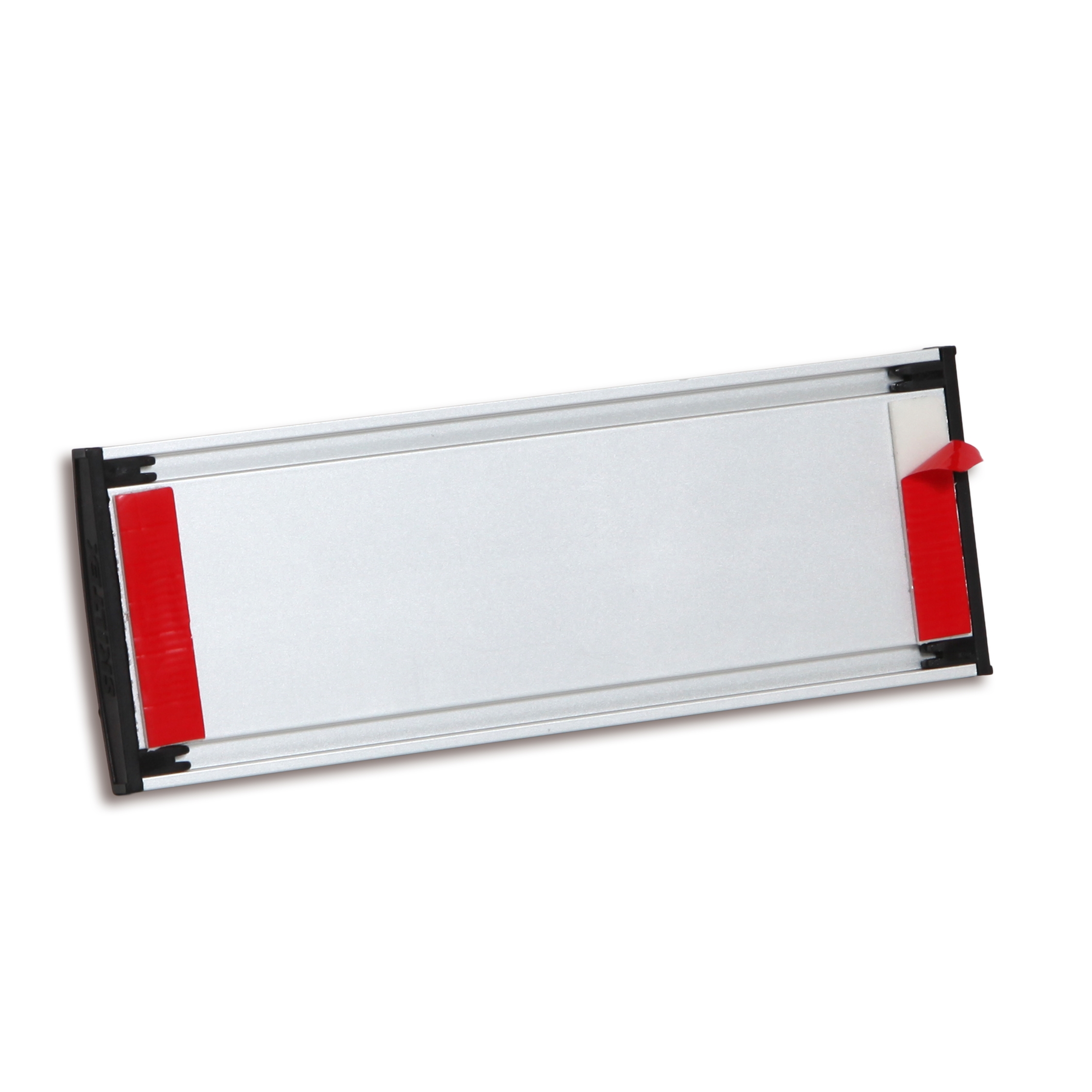 Monteringen är både enkel och diskret. Skylten levereras med förmonterad dubbelhäftande tejp av hög kvalitet, vilket gör att den kan monteras direkt på dörr eller vägg utan användning av verktyg eller borrning.
