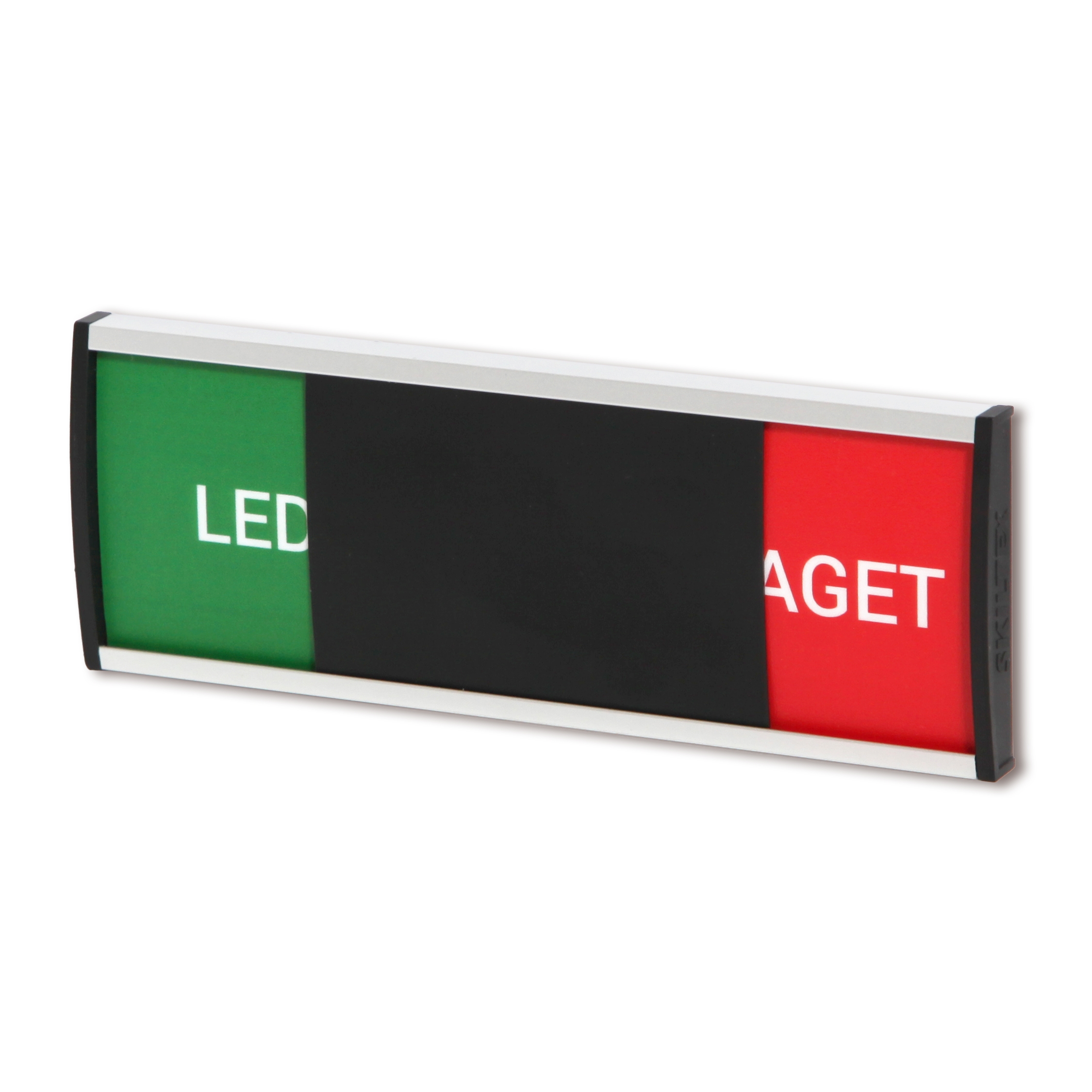 Premium Ledigt/upptaget skylt är en exklusiv och professionell dörrskylt, utvecklad för företag och kontorsmiljöer där kvalitet, design och finish står i fokus. Skylten är tillverkad i formpressad aluminium med svarta plaständstycken och har ett gediget, genomarbetat uttryck som tydligt skiljer sig från standardlösningar.