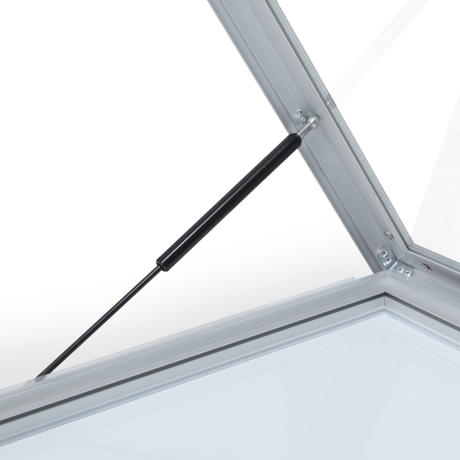 Fönstret är gjort av säkerhetsglas, som är 4mm tjockt och har gummilister till optimalt väderbeskydd. Bakplattan är magnetisk och kan användas med magneter eller fungera som en skrivtavla (whiteboard).