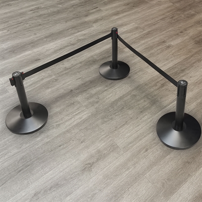 QueueMax Mini är en svart avspärrningsstolpe på 51 cm, tillverkad i galvaniserat stål med en tung betongfylld fot med golvskydd. Den låga höjden gör modellen till en elegant och diskret köledare, perfekt för museer, utställningar, showrooms, evenemang och andra miljöer där en tydlig men inte dominerande avspärrning önskas.