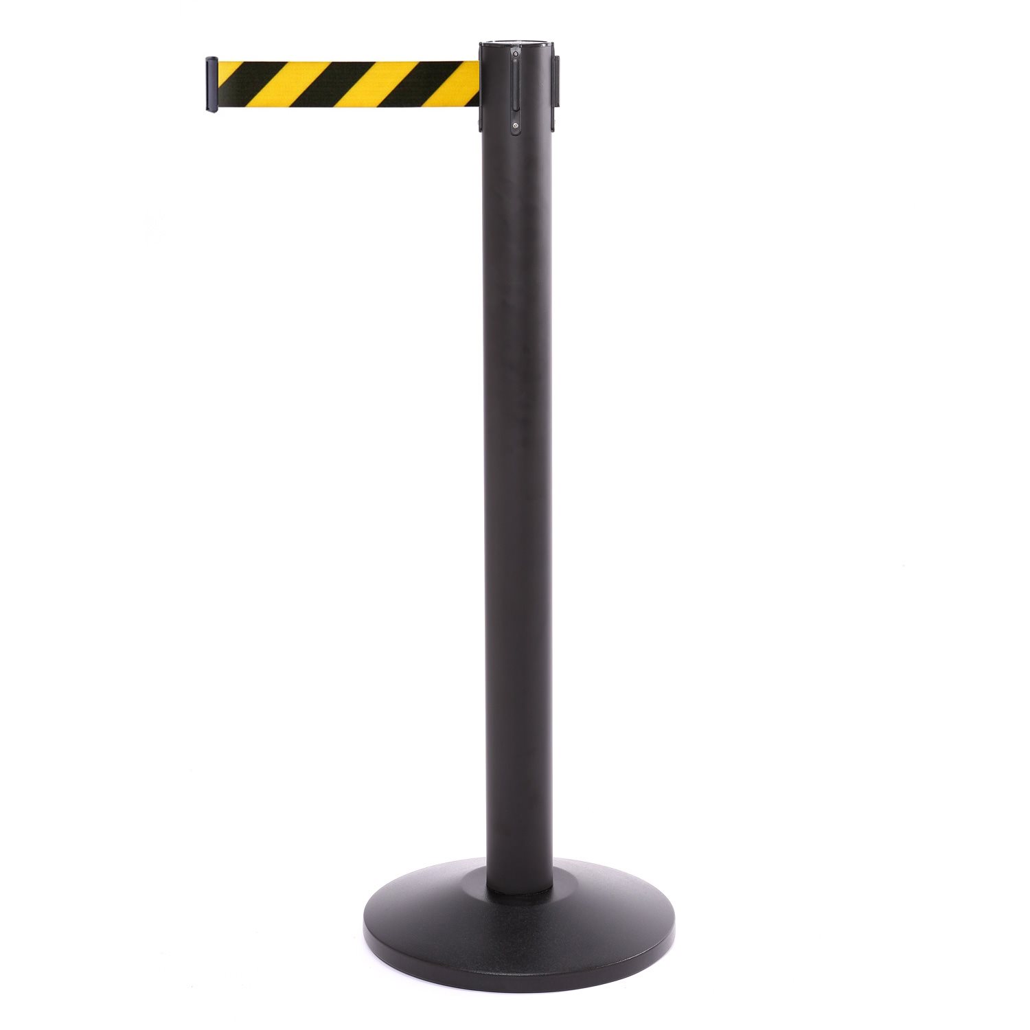QueuePro svart avspärrningsstolpe med gul/svart band
