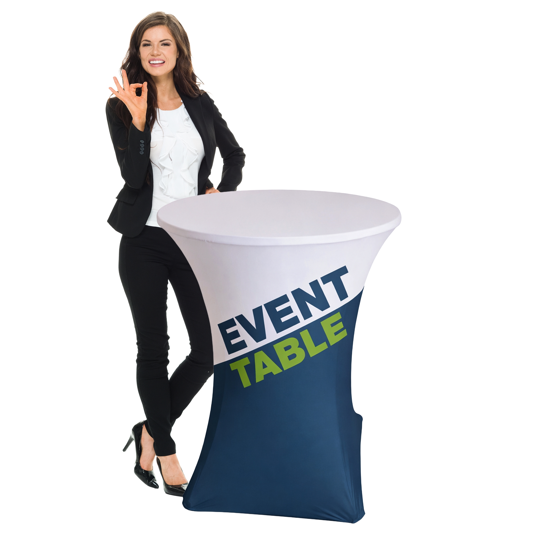 Runt ståbord/fällbart bord med eget tryck – praktiskt, elegant och mångsidigt – perfekt för mässor, event och fester!