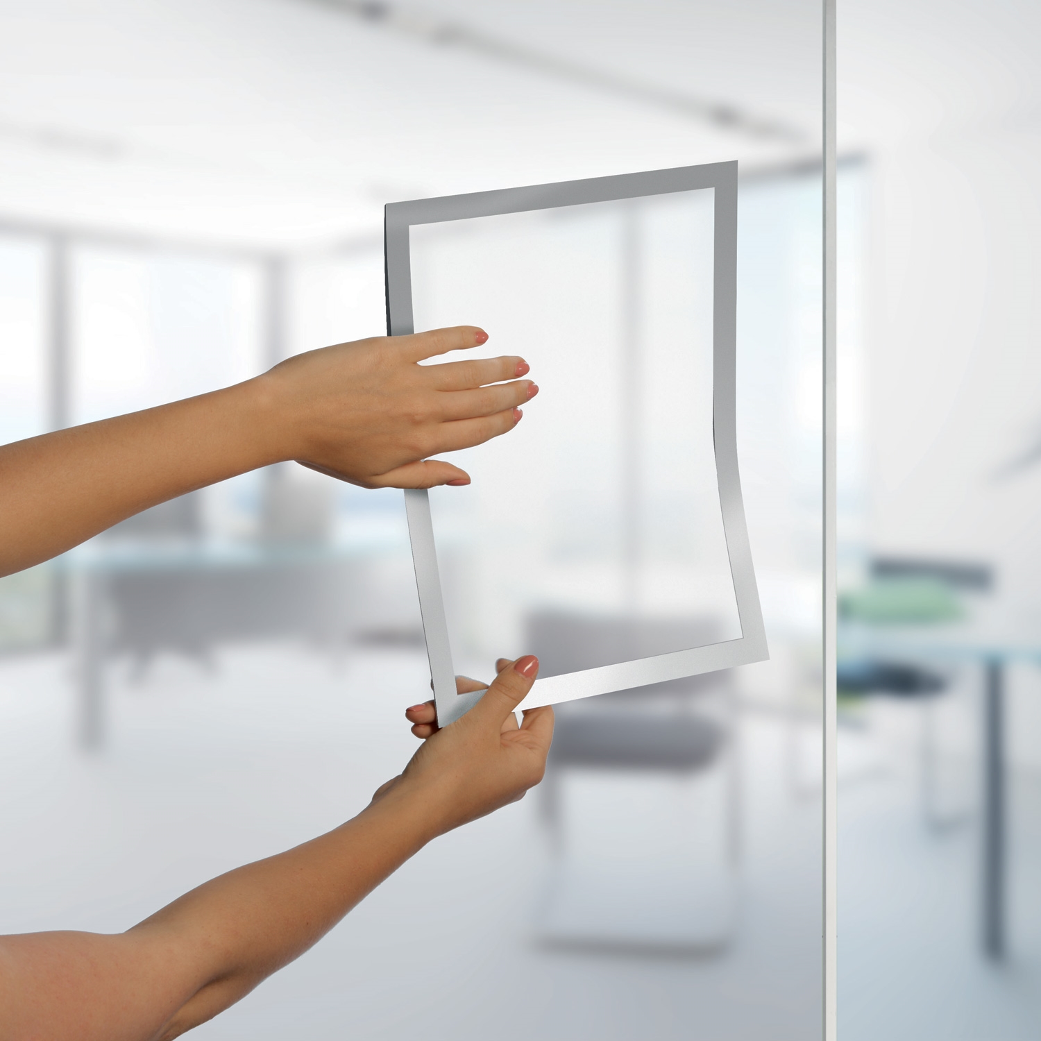 Självhäftande DURAFRAME® är den perfekta lösningen på att visa upplysningar på fasta och glatta ytor.