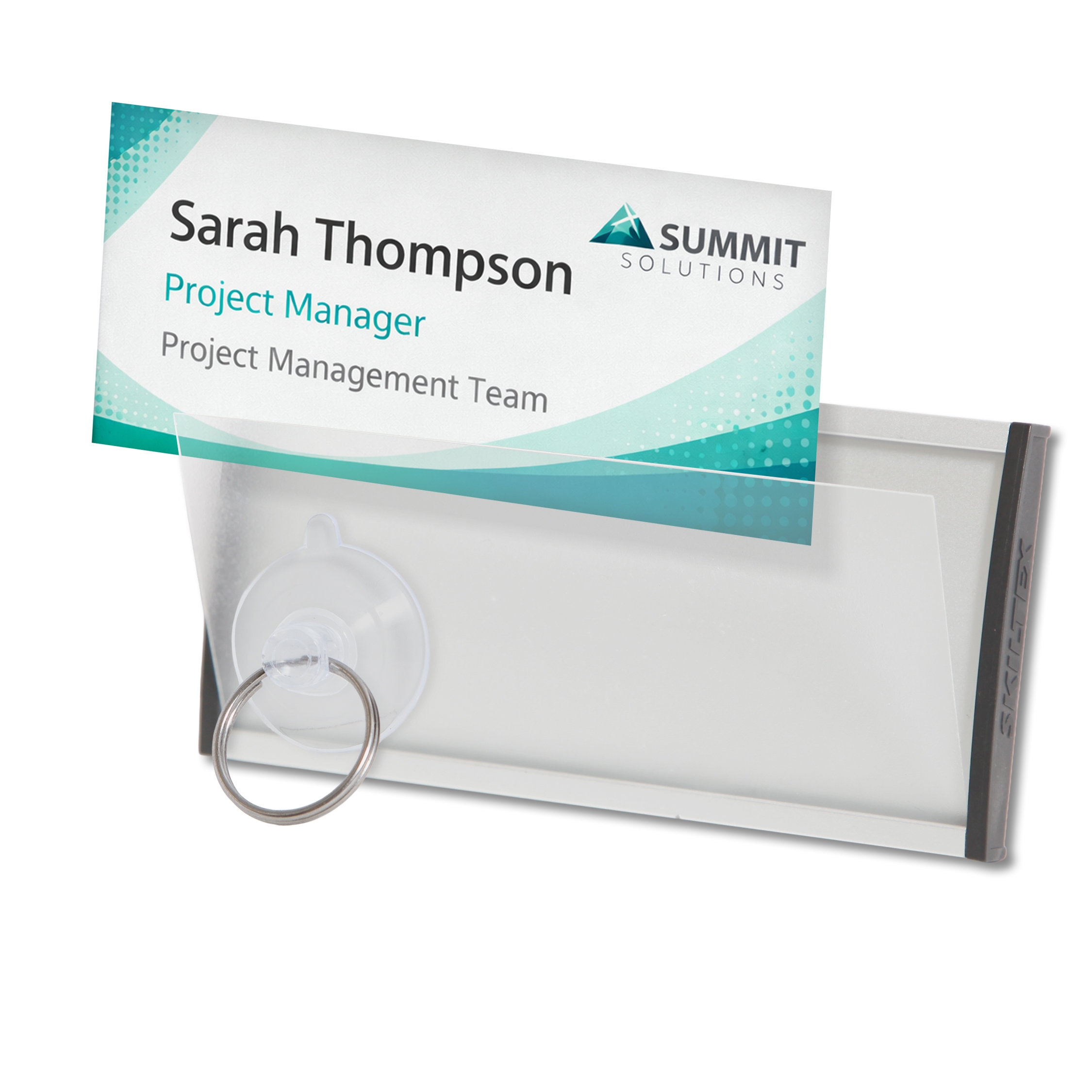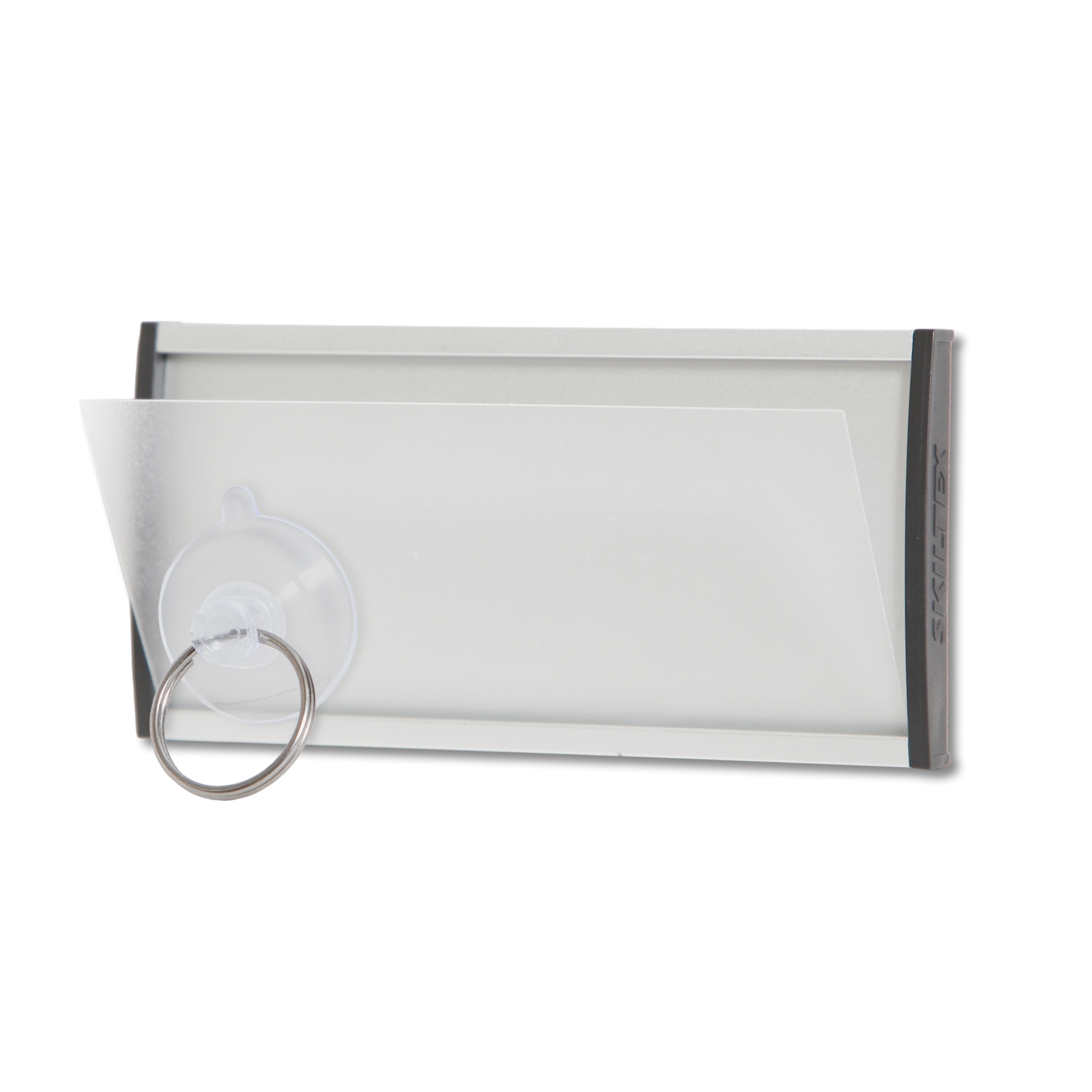 Den transparenta APET-fronten skyddar inlägget och kan enkelt tas bort när skylten behöver uppdateras. Fronten lossas genom att klämma den eller med hjälp av den medföljande sugkoppen. Därefter kan du byta ut utskriften och trycka tillbaka fronten på plats.