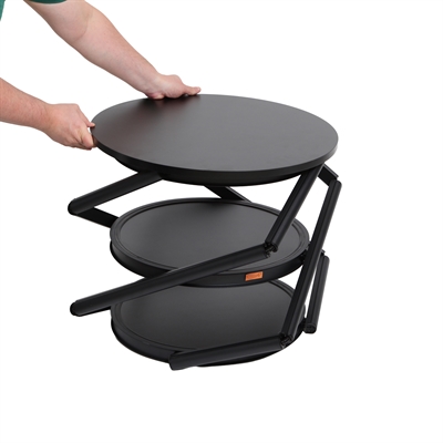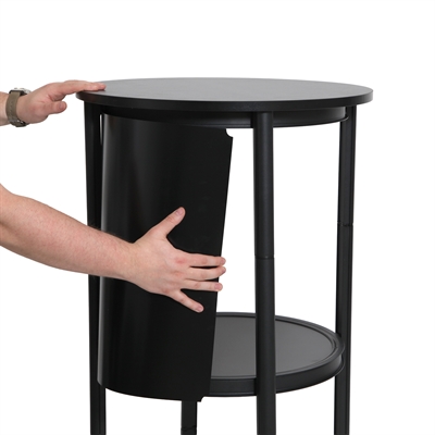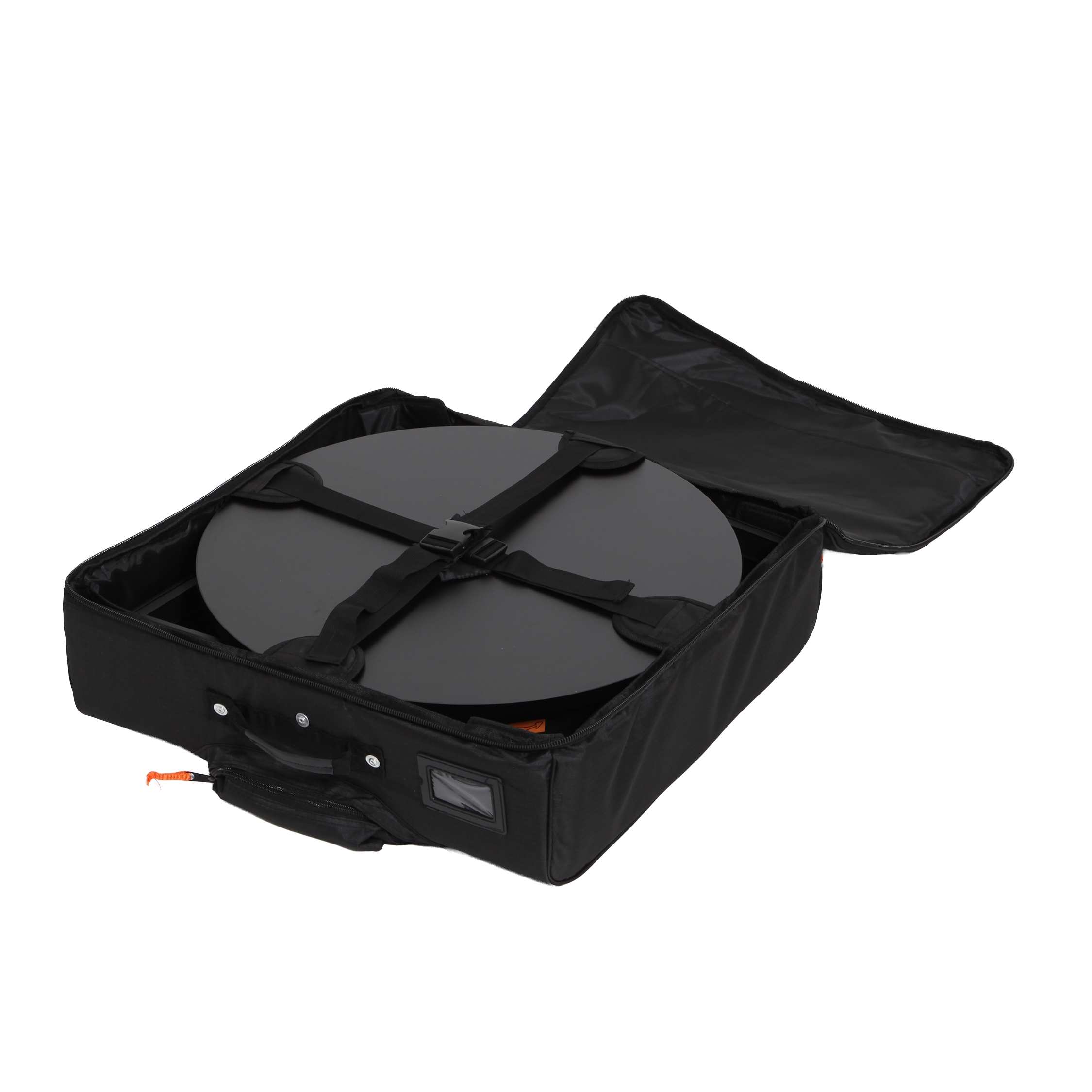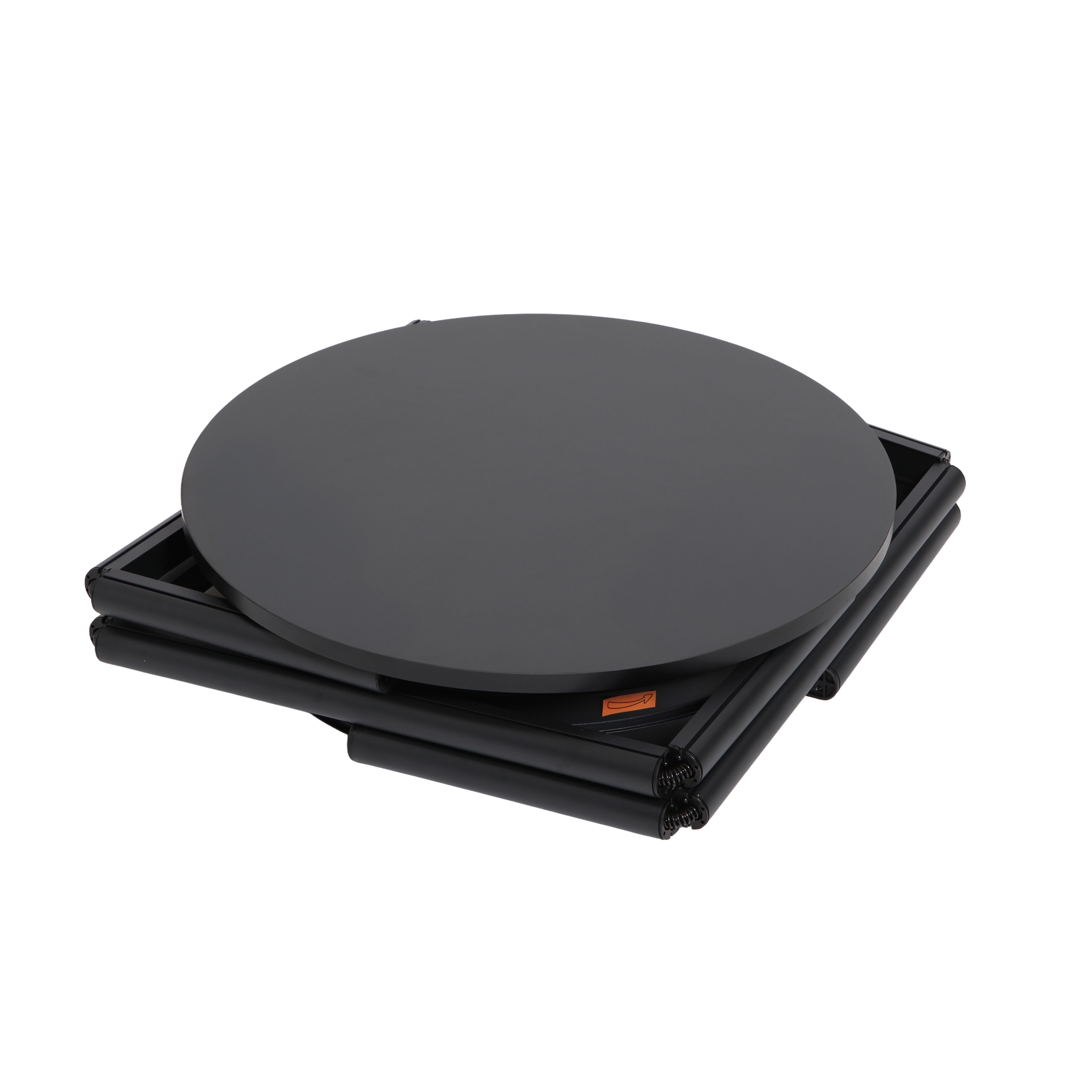 Super smart transportabel svart monterdisk som kan fällas samman och bäras runt i den medföljande väskan. Diskens lätta och stabila aluminiumkonstruktion gör den perfekt att ta med till mässor, utställningar m.m. Vår spiralformade monterdisk fälls snabbt och enkelt upp och ner, helt utan verktyg.