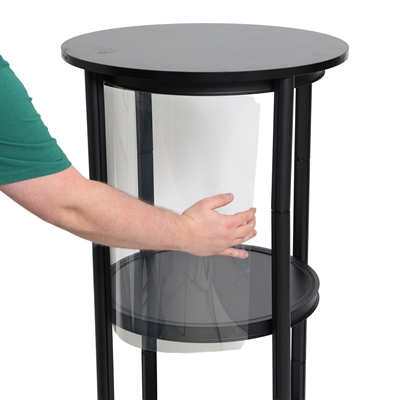 Levereras med 8 st glasklara PVC-skivor samt 8 st svarta PVC-skivor som kan monteras runt disken för att skydda de utställda varorna.