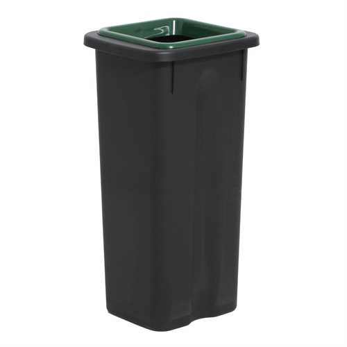 Denna lilla sopsorteringskärl för avfallssortering är gjord av svart, kraftig, 100% återvunnen plast med en kapacitet på 20l och grönt lock.