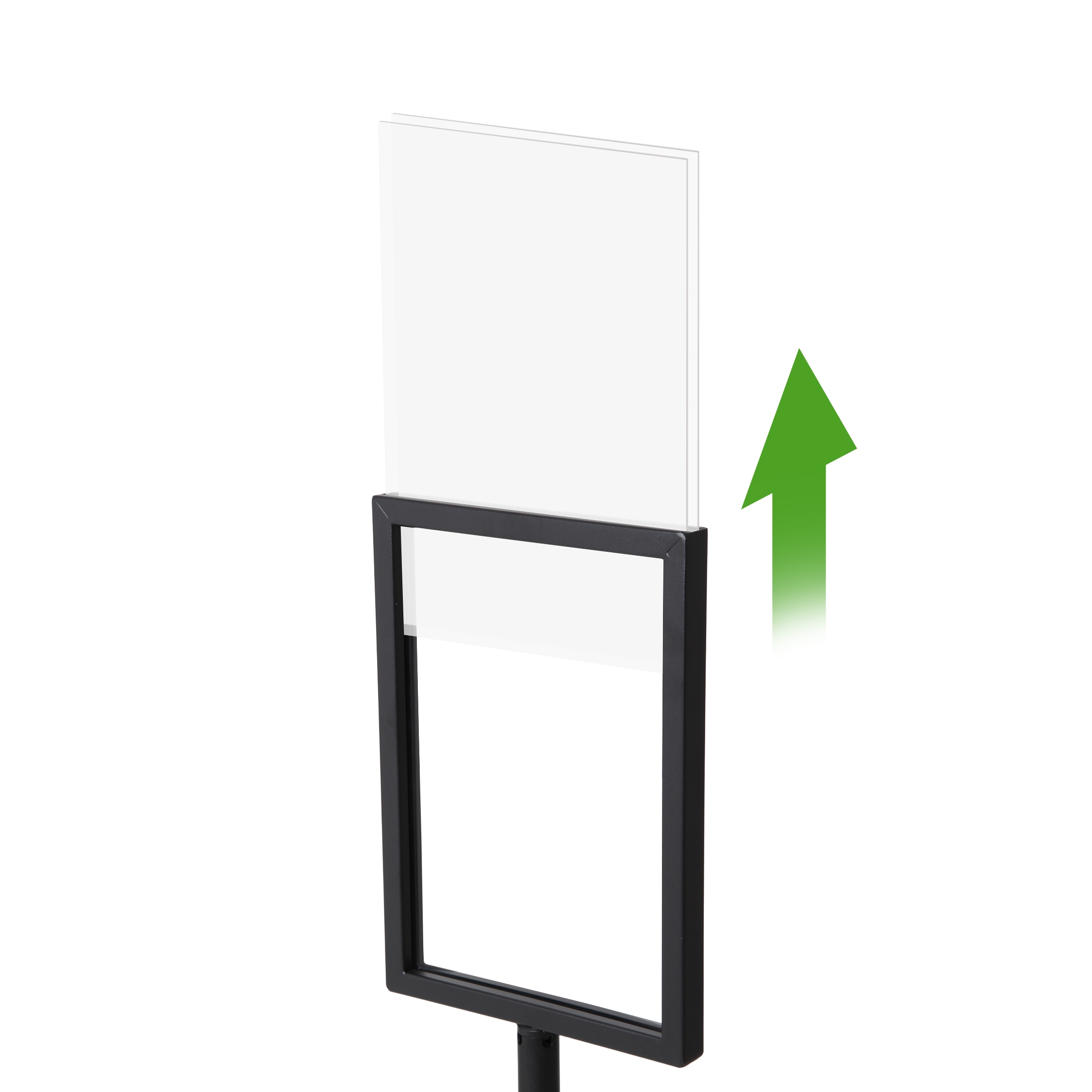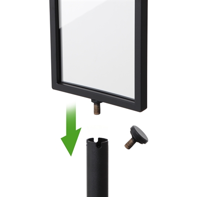 Praktisk och stilren affischram som passar Museo avspärrningsstolpar. En idealisk lösning för att visa information, priser eller meddelanden på ett professionellt sätt. Ramen monteras enkelt på stolpen och visar budskapet på ett elegant sätt.