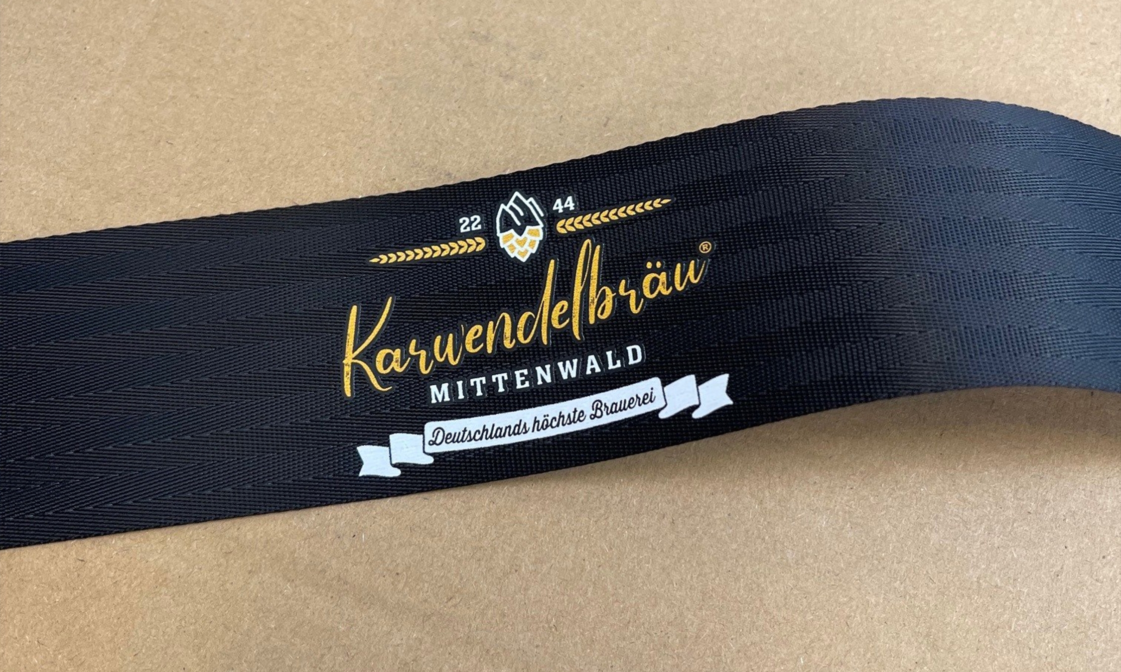 Svarta avspärrningstolpar med användaranpassade tryck på bägge sidor av bandet.