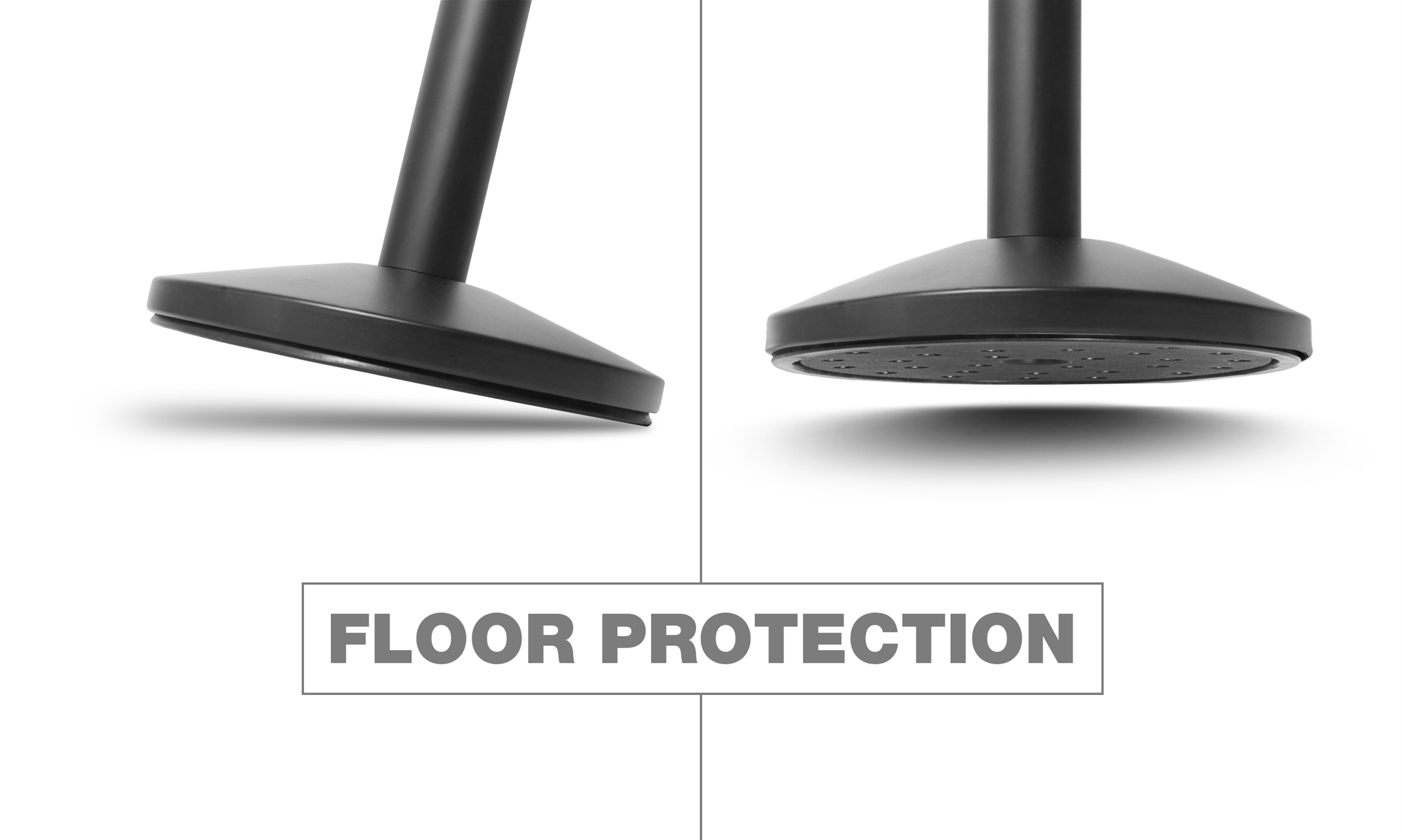 Stolparna är producerade i galvaniserat stål med en tung och stabil betongfylld fot med golvbeskydd.