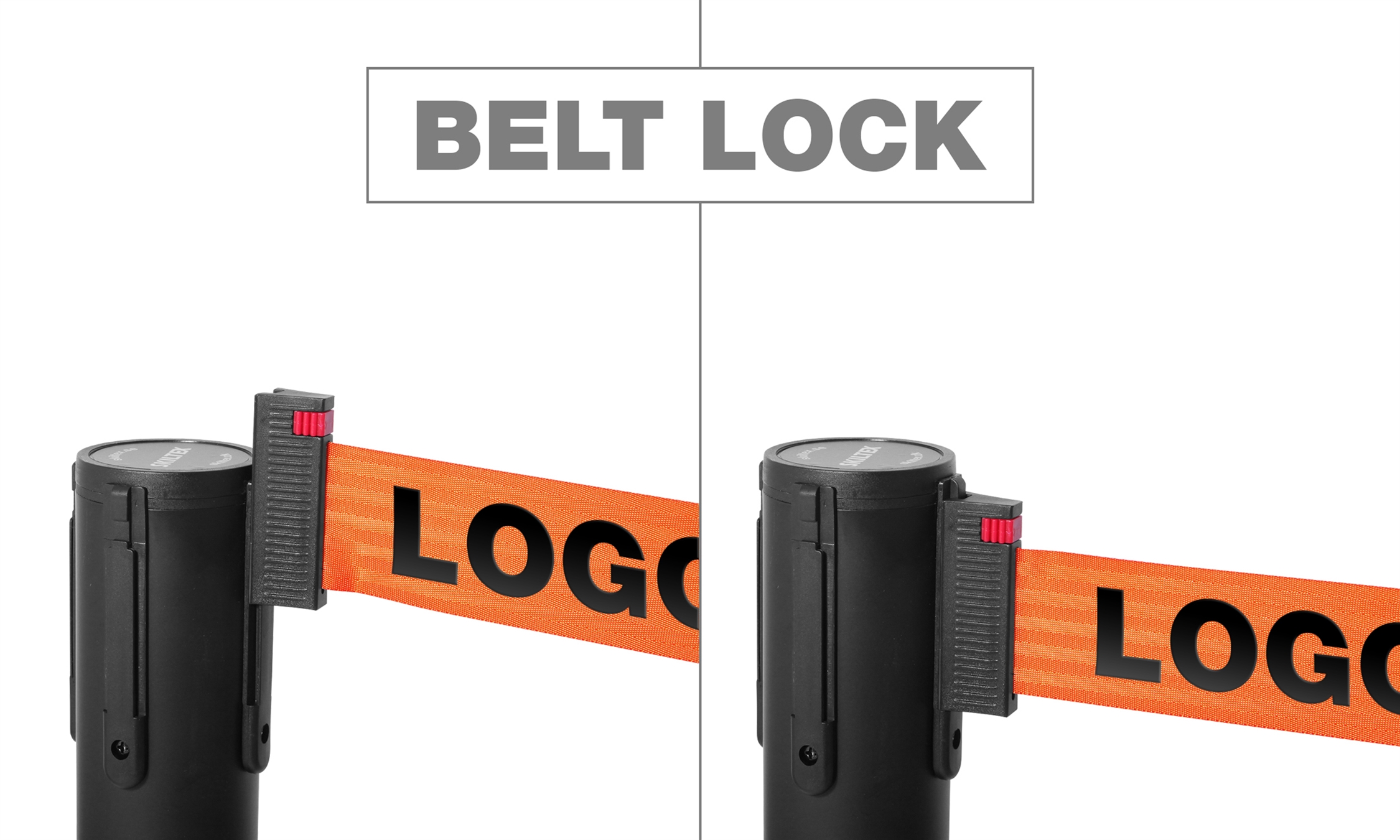 Banden är utrustade med ett lås, som säkrar att dem sitter fast och stadigt på andra stolpar. Skiltex avspärrningsstolpar har en universell band ända, som passar till andra populära avspärrningsstolpe märken – med garanti.
