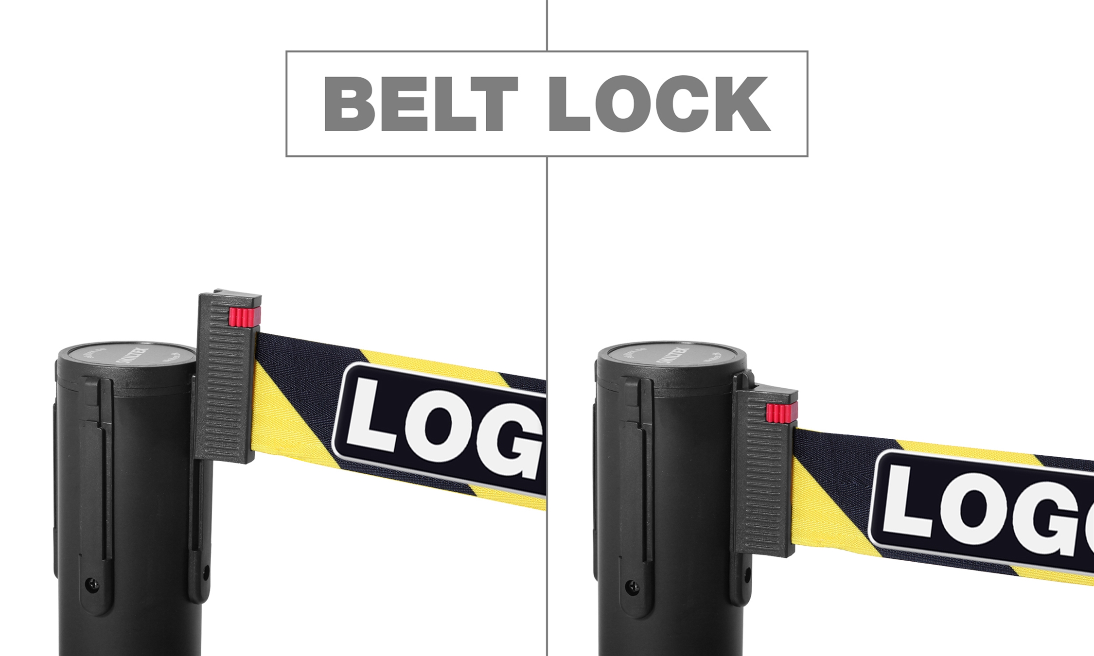 Banden är utrustade med ett lås, som säkrar att dem sitter fast och stadigt på andra stolpar. Skiltex avspärrningsstolpar har en universell band ända, som passar till andra populära avspärrningsstolpe märken – med garanti.