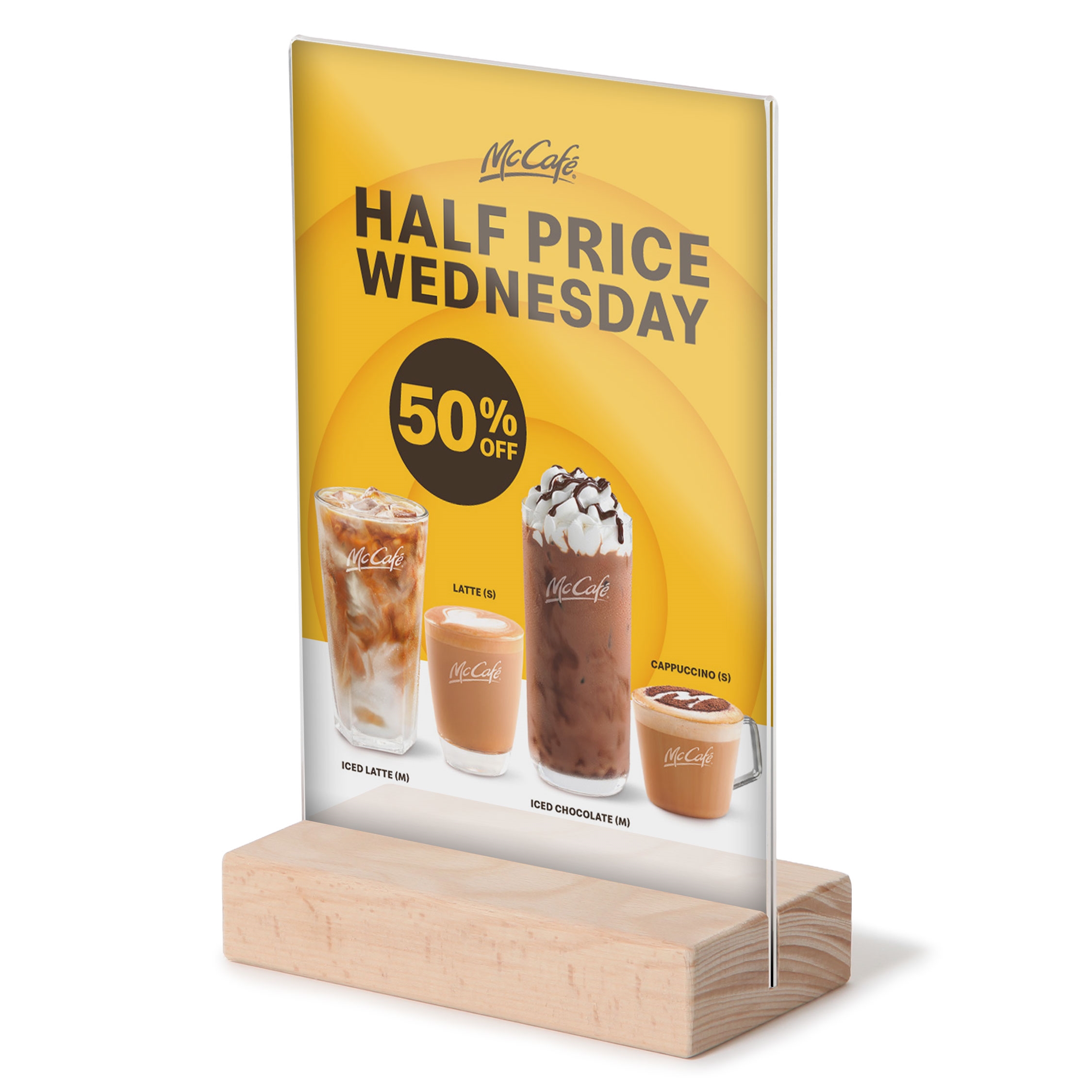 T-Ställ Stående Akrylskylt med Träfot - A5