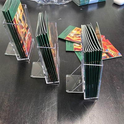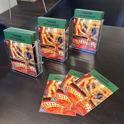 Välanpassad till presentation av flyers, broschyrer, mappar eller postkort i A6 format.